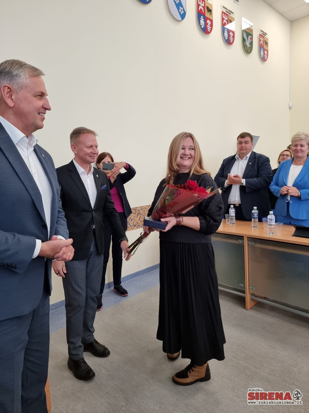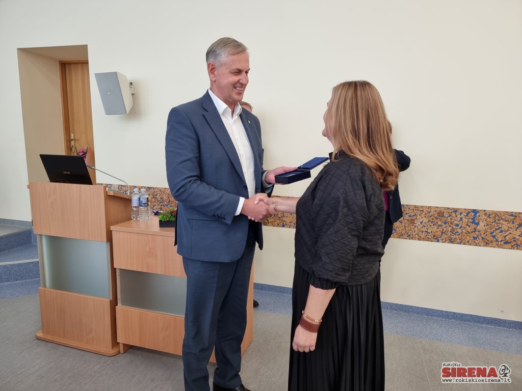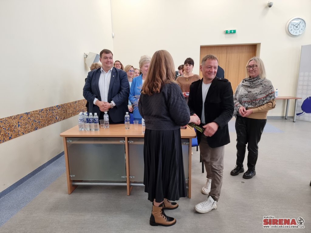 Toliau posėdis klostėsi kiek linksmesne gaida – pasveikinta ir specialiai Rokiškio rajono seniūnams 2023-aisiais sukurtu „Sidabro ženklu“ apdovanota prie Obelių seniūnijos komandos vasarą prisijungusi Gita Sinkevičiūtė-Araminienė, kuri laikinai pavaduoja ilgalaikių atostogų išėjusią nuolatinę seniūnę Jūratę Šinkūnienę. Gėlių ir sveikinimų prisijungusiai kolegei negailėjo Juodupės, Rokiškio, Kazliškio, Jūžintų, Panemunėlio seniūnijų vadovai.