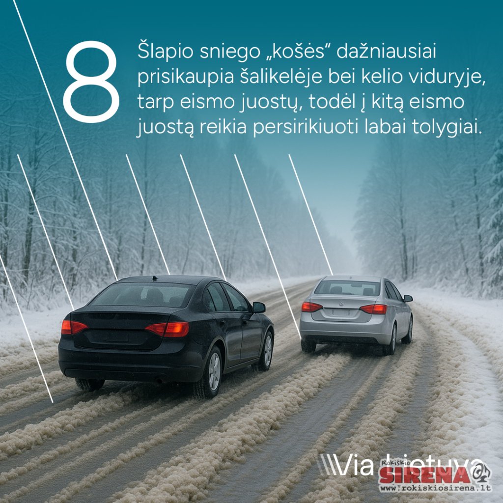Itin pavojingi žiemą yra sniego „koše“ padengti ruožai. Būtent juose dažniausiai kyla automobilio sumėtymo pavojus. Atminkite, kad šlapio sniego dažniausiai prisikaupia šalikelėje bei kelio viduryje, tarp eismo juostų. Todėl persirikiuoti į kitą eismo juostą reikia labai tolygiai. Specialistai sako, kad saugiausia važiuoti susigulėjusiu puriu sniegu, vis dėlto toks sniegas kai kur gali slėpti gryną ledą, todėl reiktų būti itin atsargiems.