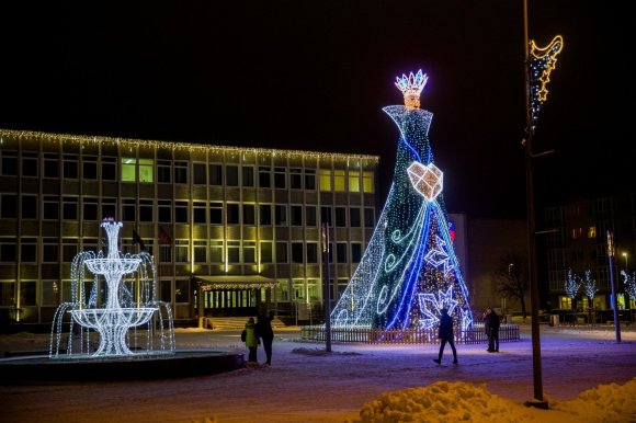 Tauragės žaliaskarė papuošta dideliu, raudonu kaspinu iš lempučių, o Kretingos centre pastatyta dvylikos metrų aukščio eglė išpuošta šviečiančiais baltais nubėgančiais masyviais lietaus lašais ir sidabru žėrinčiomis girliandomis bei veidrodiniais burbulais. Kitoje eglės pusėje taip pat lemputėmis spindintis Kalėdų senelio krėslas, ant kurio prisėsti gali visi norintieji. Ši vieta taip pat jau tapo pamėgta fotografuotis.