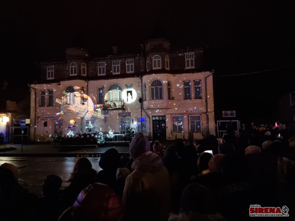 Naujos renginio koncepcijos kūrybinė komanda neišrado: koncertas, sveikinimo žodžiai ir – trys, du, vienas – įspūdingų fejerverkų fone sužibo Kalėdų simbolis. Tačiau net ir tokia pat eiga šiemet buvo visai kitokia: šventė kurta šalia istorinio pastato su bokšteliais, kuris tą vakarą „atgijo“ – namo sienas nuspalvino įvairios projekcijos. Muzikinę pasaką apie tai, kas nutiko (ne)apsnigtame mieste pasakojo Rokiškio kultūros centro vaikų vokalinė grupė „Akoladė“, vokalinė grupė „Bella Fa“, vaidino Rokiškio kultūros centro Rokiškio teatro aktoriai, o jiems padėjo atlikėja Augustė Vedrickaitė, kurios dainos skambėjo ir pasakai pasibaigus bei eglei suspindus. O miestelėnai tuo metu mėgavosi karštu vynu ir dairėsi dovanų mugėje.