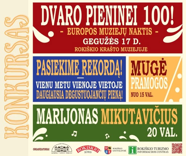Muziejaus naktis Rokiškyje šį šeštadienį – skambės garsiai, nes AB „Rokiškio sūris“ miestui dovanoja įspūdingą Marijono Mikutavičiaus ir grupės gyvo garso koncertą. Tokio masto muziejaus nakties Rokiškio krašto muziejus dar neregėjo, o viso to priežastis – Rokiškio dvaro pieninė, šiemet mininti 100 metų sukaktį. Vieno ryškiausių Lietuvos pop muzikos atlikėjų koncertą miestelėnams ir svečiams dovanoja akcinė bendrovė (AB) „Rokiškio sūris“, kurie savo veiklos pradžią sieja su dvaro pienine. Nekasdieniškų, įdomių veiklų tądien numatyta kur kas daugiau: nuo teminės parodos „Pienas“ iki pieno upės bandant pasiekti daugiausiai vienoje vietoje pieną degustuojančių žmonių rekordą. Renginys – nemokamas, o organizatoriai kviečia: prie dvaro vietos užteks visiems.
