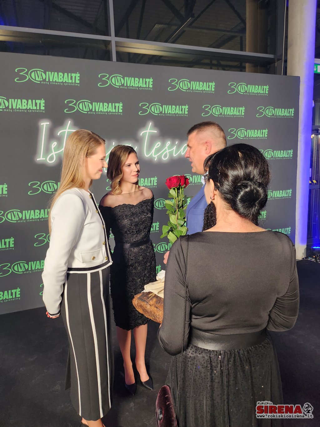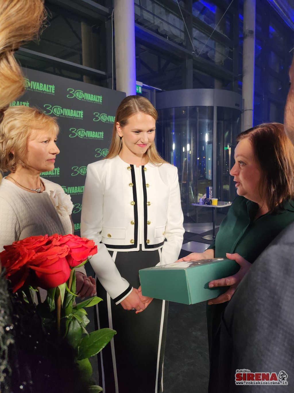 Pasveikinti kolegių, draugių, verslininkių tą vakarą rikiavosi ir Lašų Žemės ūkio bendrovės vadovė Eglė Akramavičiūtė su Lašų elevatoriaus vadovu Mantu Kazlausku. Sveikinimų atvežė ir krašto ūkininkai: Tomas Šablinskas su žmona Viktorija bei Žydrūnas Markevičius su žmona Giedra.