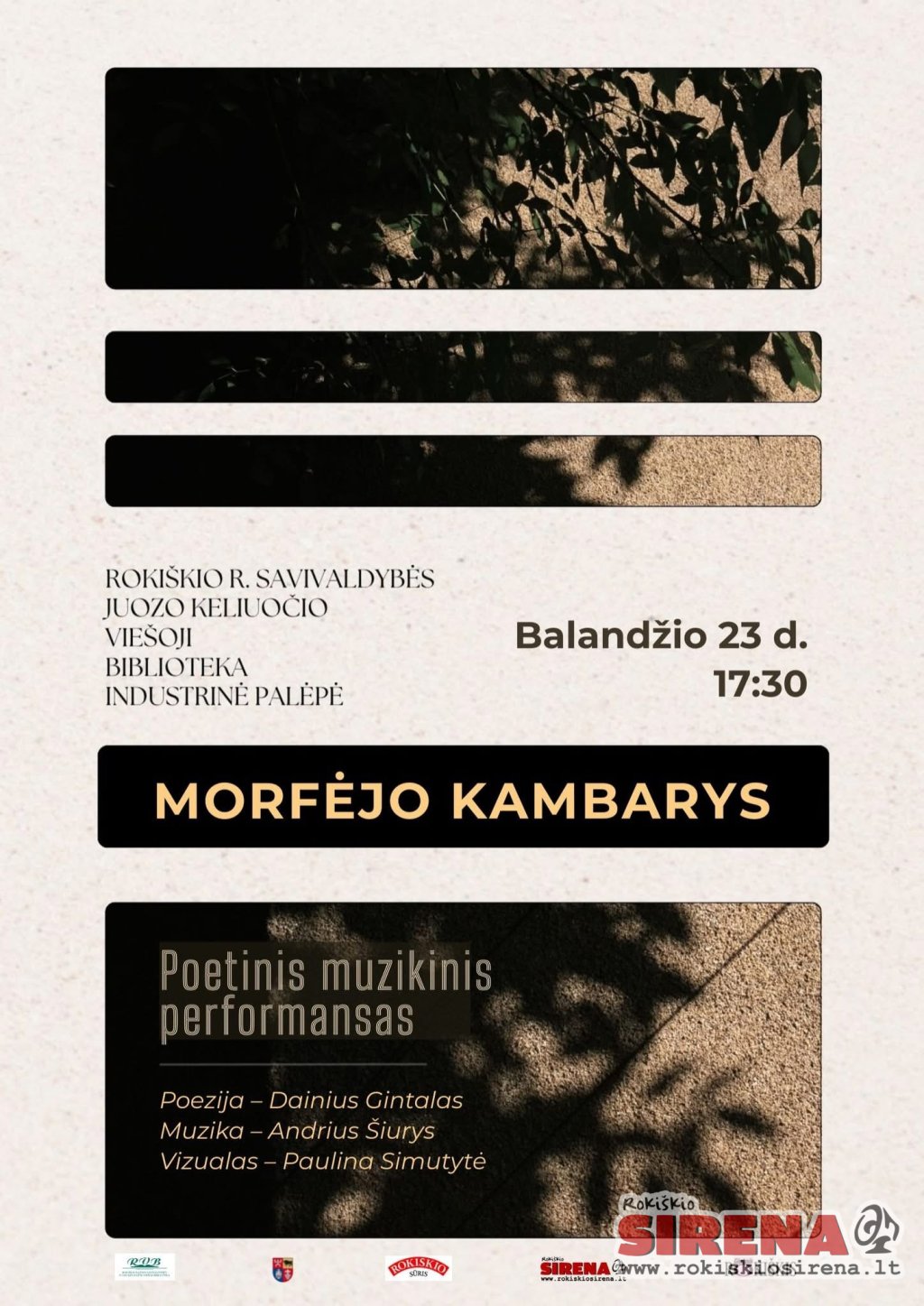 Balandžio 23 d. 17:00 val. – Nacionalinės bibliotekų savaitės renginys. Poetinis-muzikinis performansas „Morfėjo kambarys“.