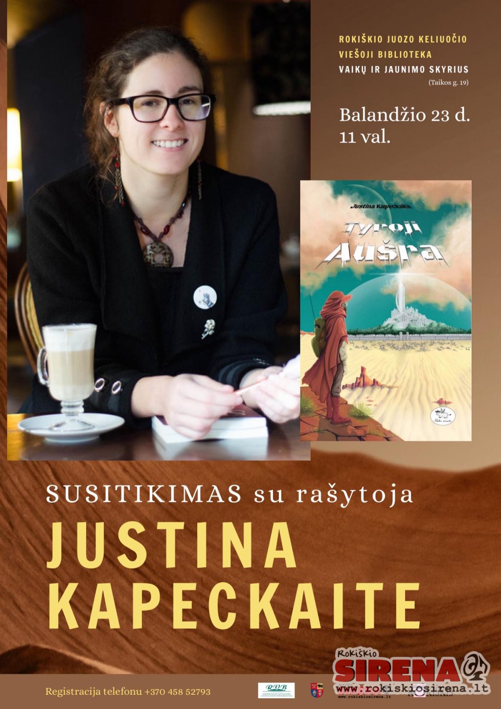 Balandžio 23 d. 11 val. – Susitikimas su paauglių rašytoja Justina Kapeckaite.