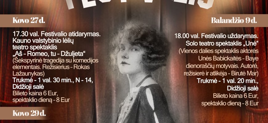 Kovo 27 - balandžio 9 dienomis Kupiškio kultūros centre - Unės Babickaitės profesionaliųjų teatrų festivalis.