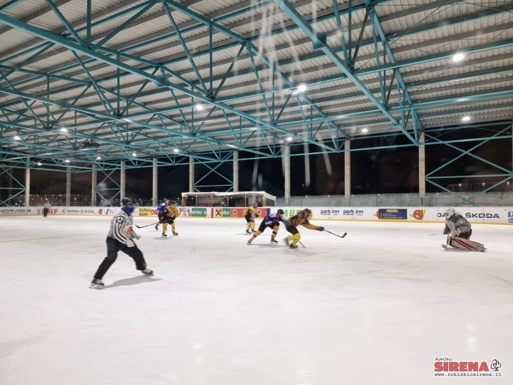 Žvarbų penktadienio vakarą rokiškėnai ant savo ledo susitiko su Elektrėnų klubu „Poseidonas DKLRM“. Nors Elektrėnų komanda nebuvo laikoma itin stipriais varžovais (iš 12-os sužaistų rungtynių pergalę pasiekė tik trijose), visgi žaidimas Rokiškio ledo arenoje nebuvo itin paprastas: netrūko žaidėjų kontakto bei aršių akistatų kovoje dėl rutulio.