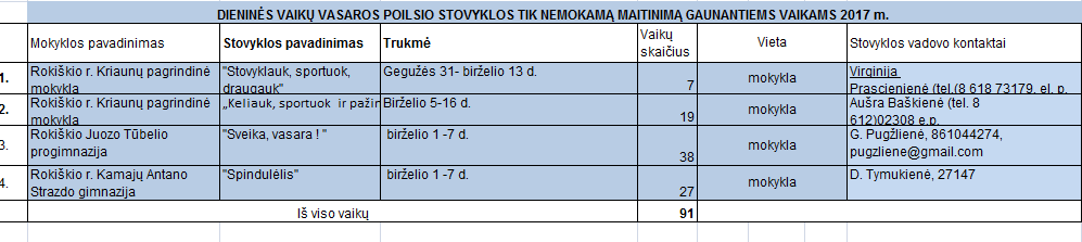 Taip pat startavo Juodupės gimnazijos, darželio-mokyklos „Ąžuoliukas“, Rokiškio Senamiesčio progimnazijos, Obelių gimnazijos ir daug kitų rajoninių vasaros stovyklų.