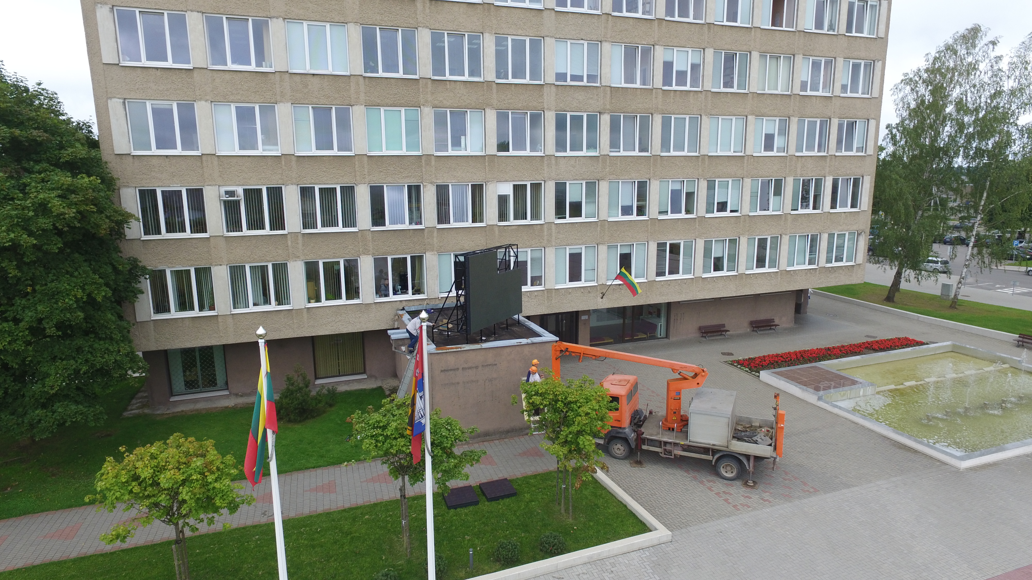 Ant Rokiškio rajono savivaldybės administracijos pastato montuojamas LED ekranas (video) (13)