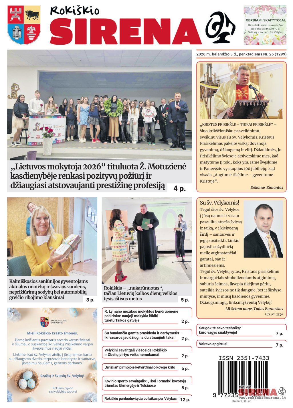 „Rokiškio Sirena“ – balandžio 3 d. numeryje skaitykite: