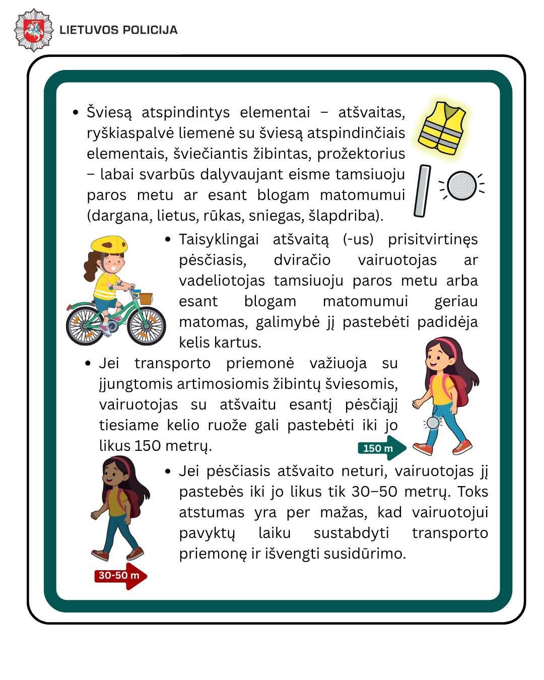 Dėvėkite šviesą atspindintį elementą ir taip saugokite save!
