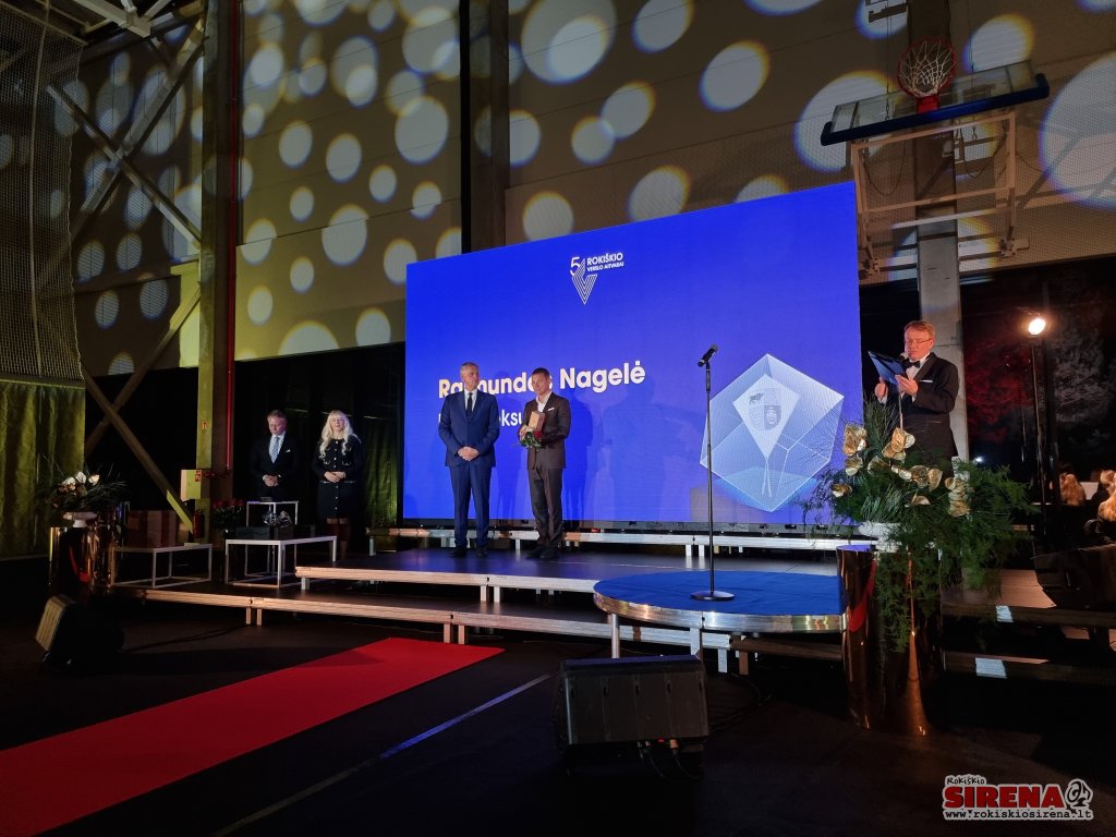 Į sceną žengę garbūs svečiai: Lietuvos prekybos, pramonės ir amatų rūmų asociacijos prezidentas Sigitas Gailiūnas, Panevėžio prekybos, pramonės ir amatų rūmų asociacijos prezidentas Kazimieras Antanynas ir generalinis direktorius Visvaldas Matkevičius, už verslo ir savivaldos bendrystę įvertinimą įteikė Rokiškio merui Ramūnui Godeliauskui. Komanda pabrėžė matanti pavyzdinį betarpišką verslo atstovų ir rajono vadovų bendrystę kuriant rajono gyventojų gerovę.