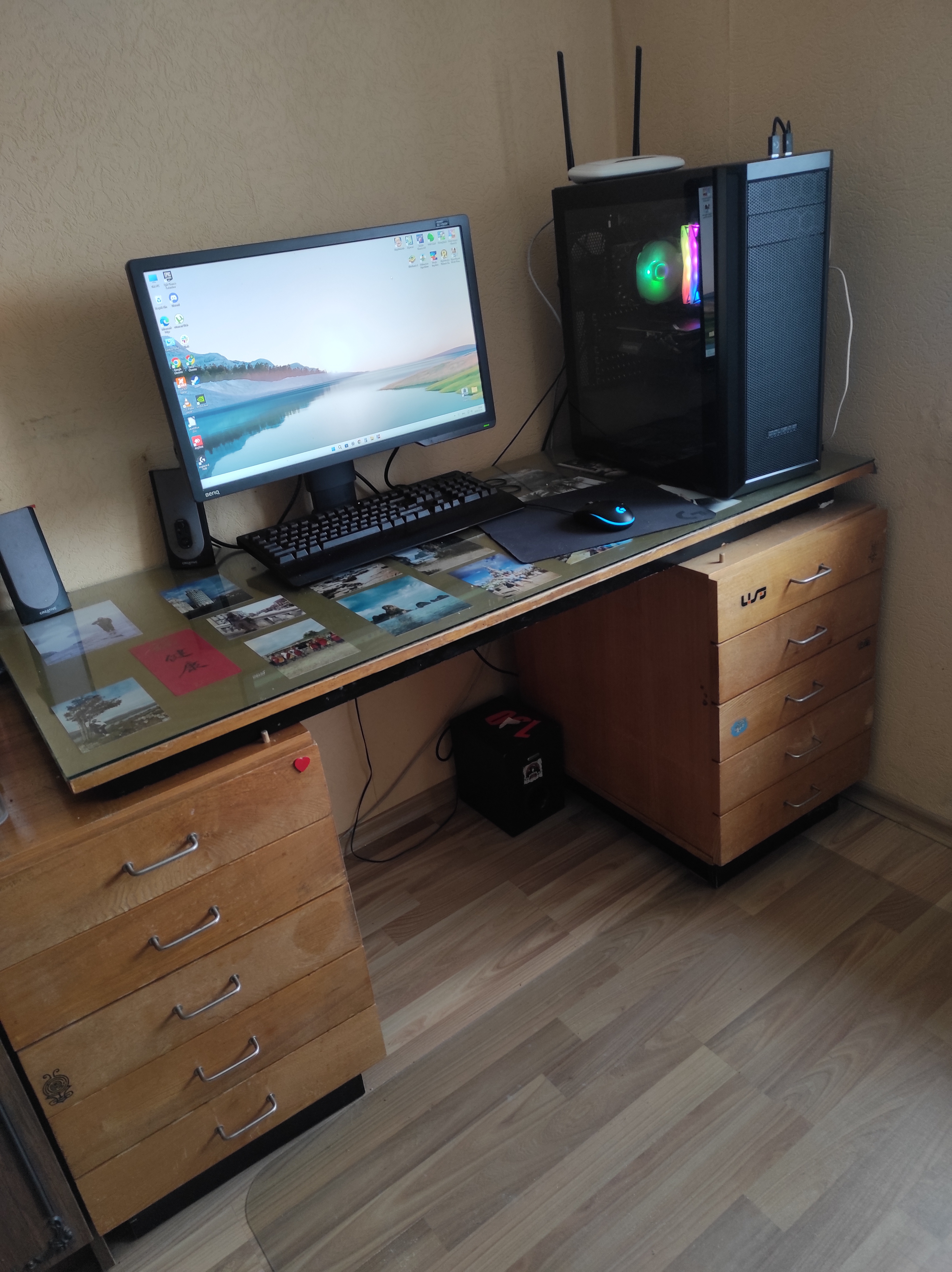 Dovanoju rašomąjį stalą su dviem spintelėmis, didelį stalą, kuris prasiilgina ir atvirą knygų spintą