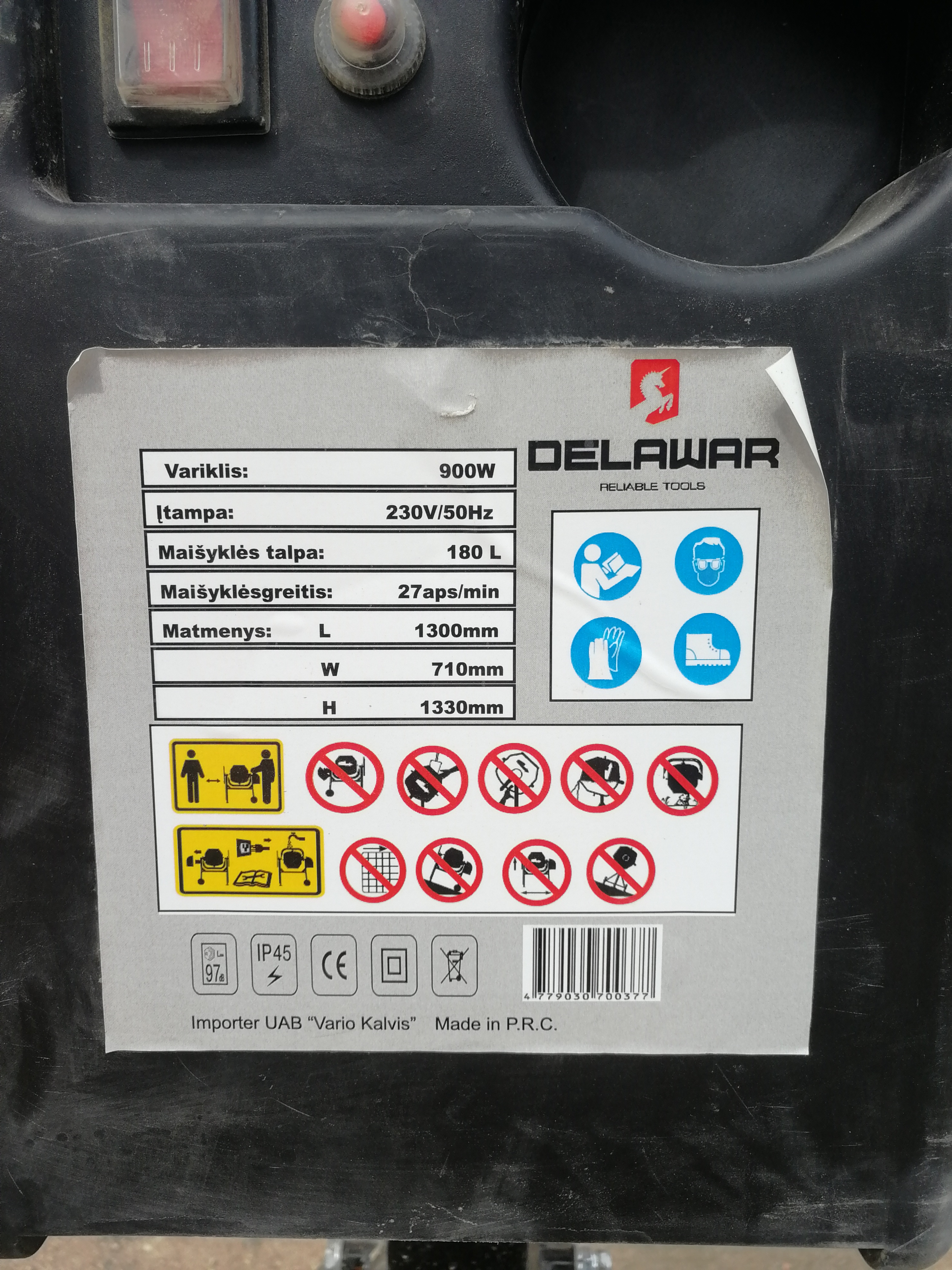 Betono maišyklę „Delawar“ 180 l, variklis 900 W. Nauja, naudota 2 dienas