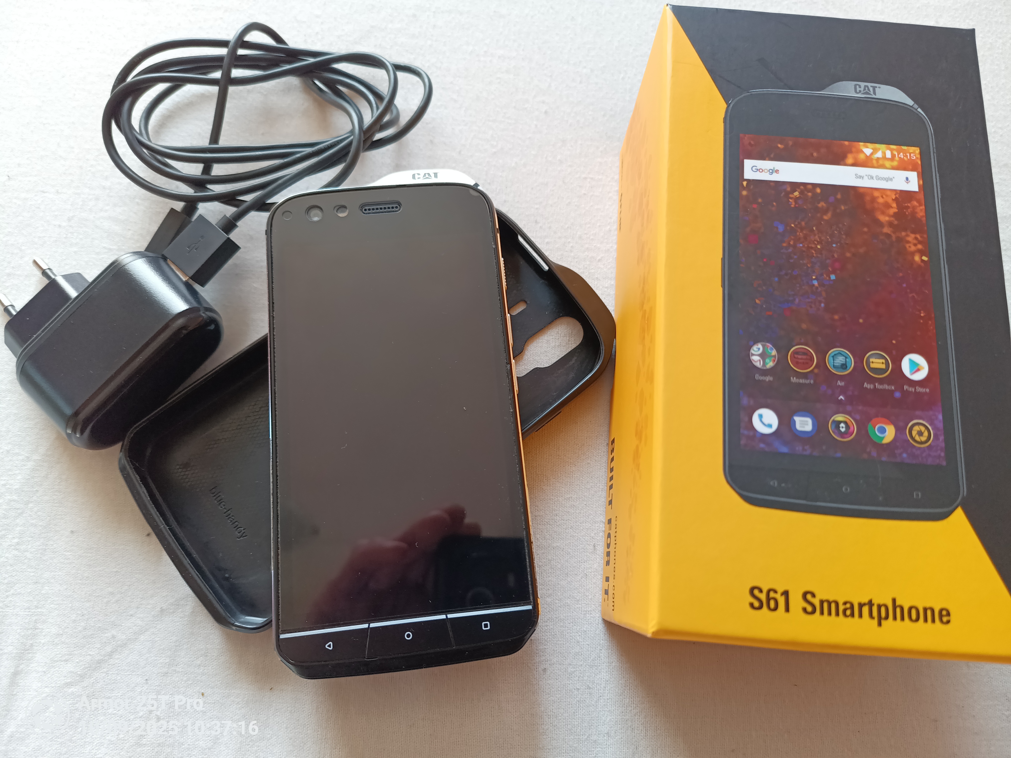 Labai geros būklės išmanųjį telefoną CAT S61. Yra dėžutė, dėklas, įkroviklis, atsarginė plėvelė ekranui
