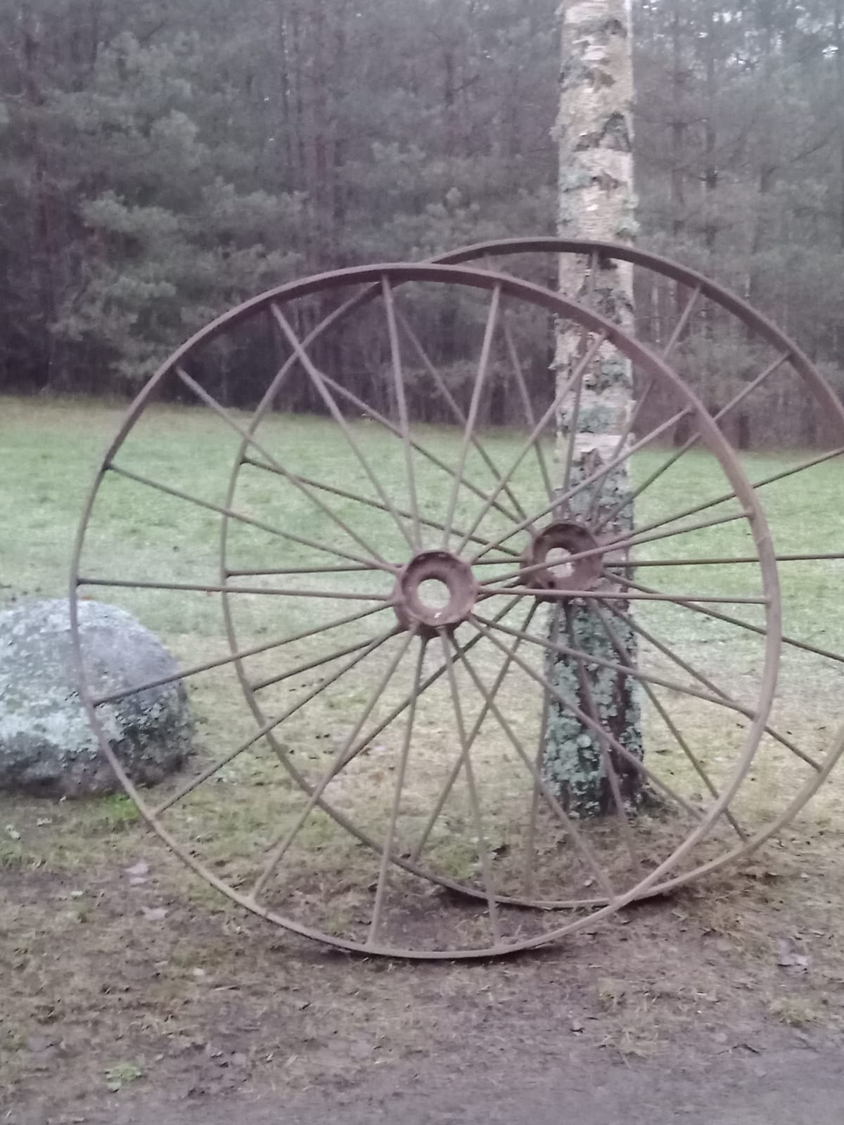 2 grėbiamosios ratus 137 cm ir latvišką elektrinį oblių. Oblius 25 Eur., ratai po 25 Eur