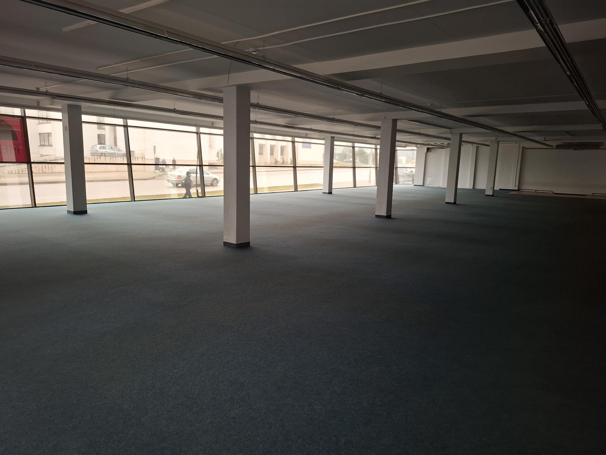 Salės plotas 520 kv. m. Pirmas aukštas, yra vidinio kiemo rampa. Kaina 7,50 Eur/kv. m.