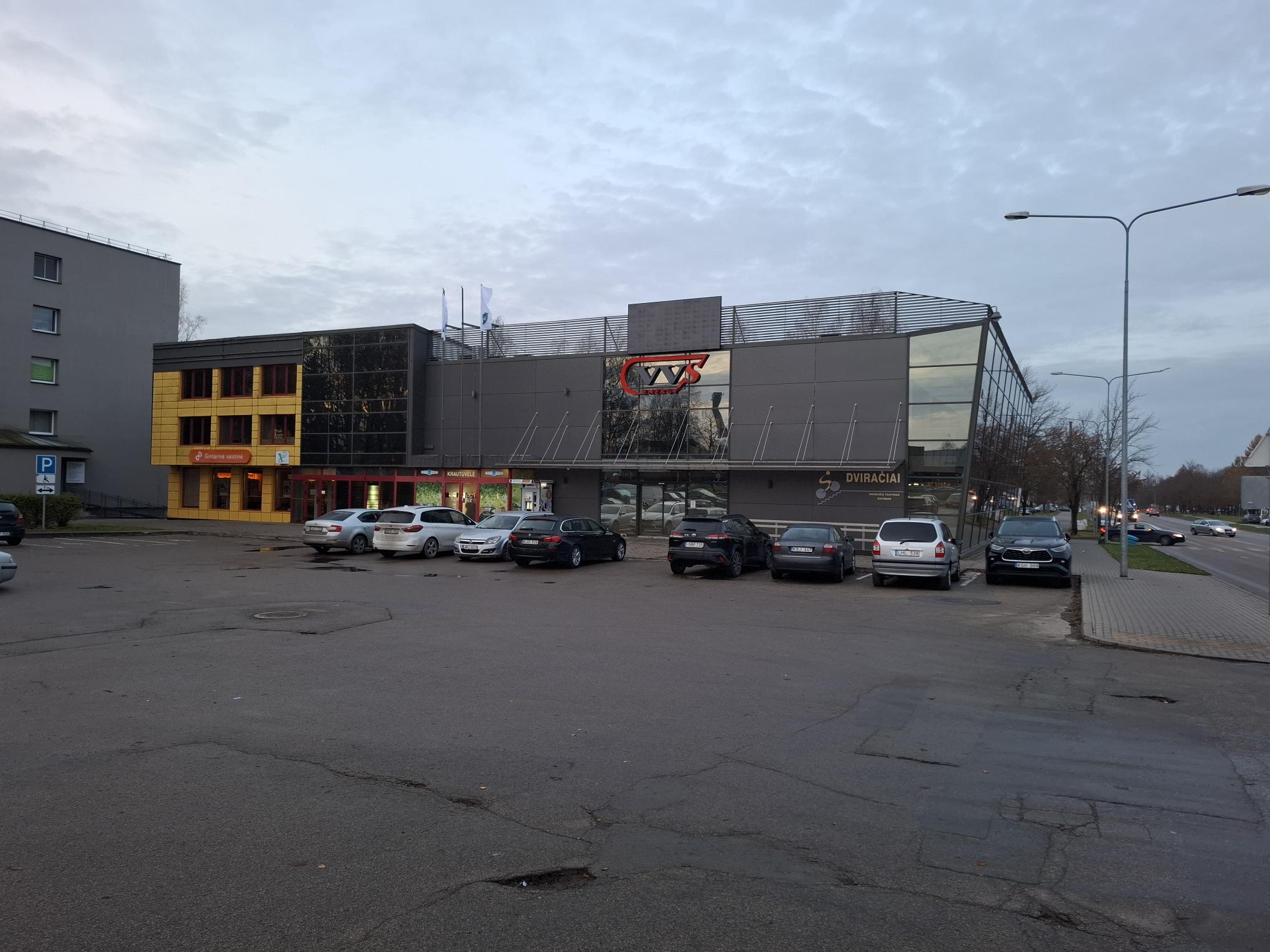 Pastatas yra strategiškai patogioje vietoje: daugiabučių rajonas, erdvi automobilių aikštelė, šalia pagrindinė miesto sankryža ir kita.