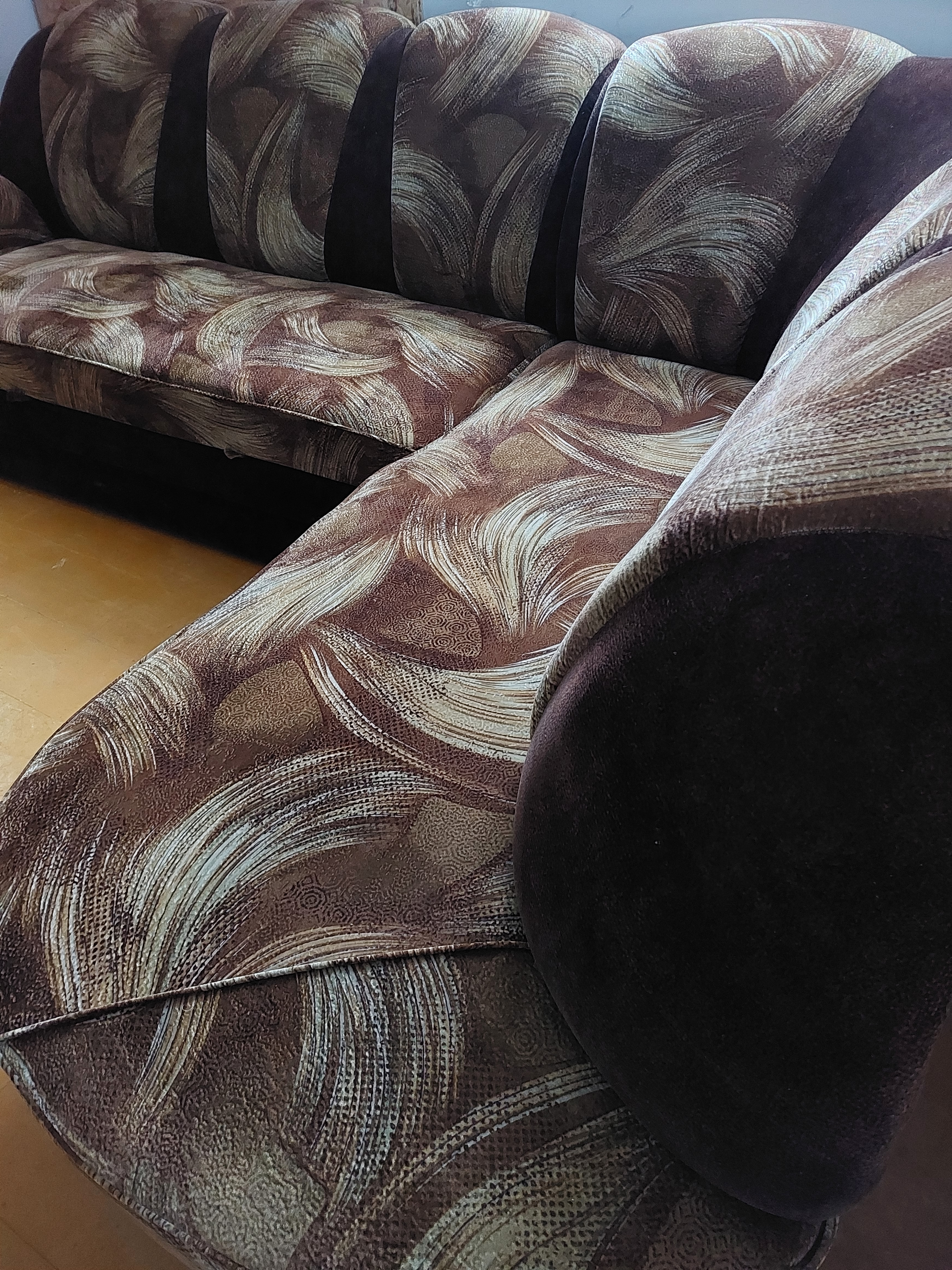 Minkštą kampą. Be defektų, išsiskleidžia, yra dėžė patalynei. Atvežimas nėra problema