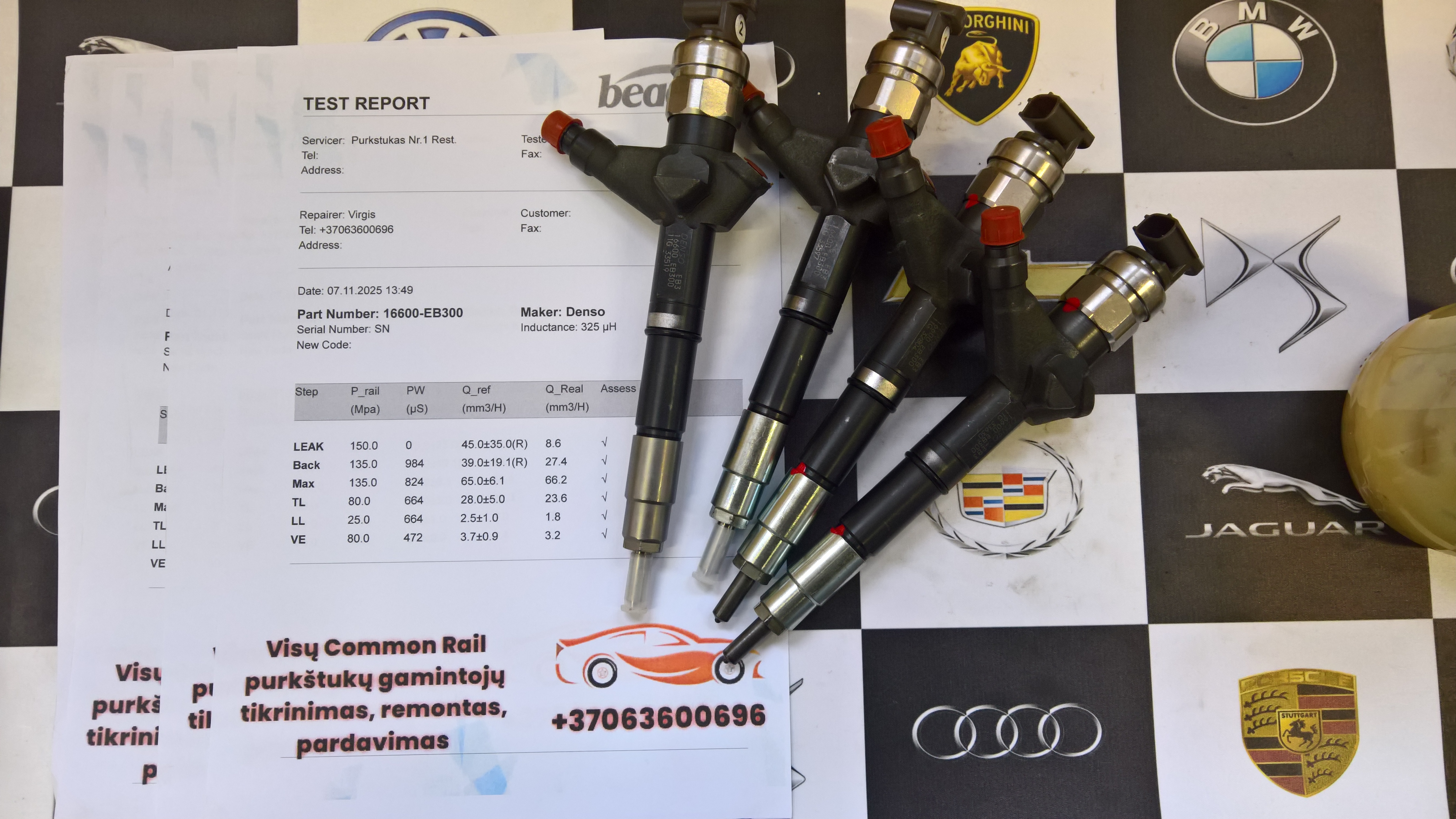 Kuro purkštukus, tinkančius „Nissan“ ( Navara, NP300 Navara, Pathfinder III, Pick Up) 2.5d 98-106-120-126-128-140 kW. Kodas: 16600-EB300. Yra 4 vnt. 2 restauruoti, kaina po 100 Eur., 2 patikrinti, atitinka parametrus, kaina po 70 Eur
