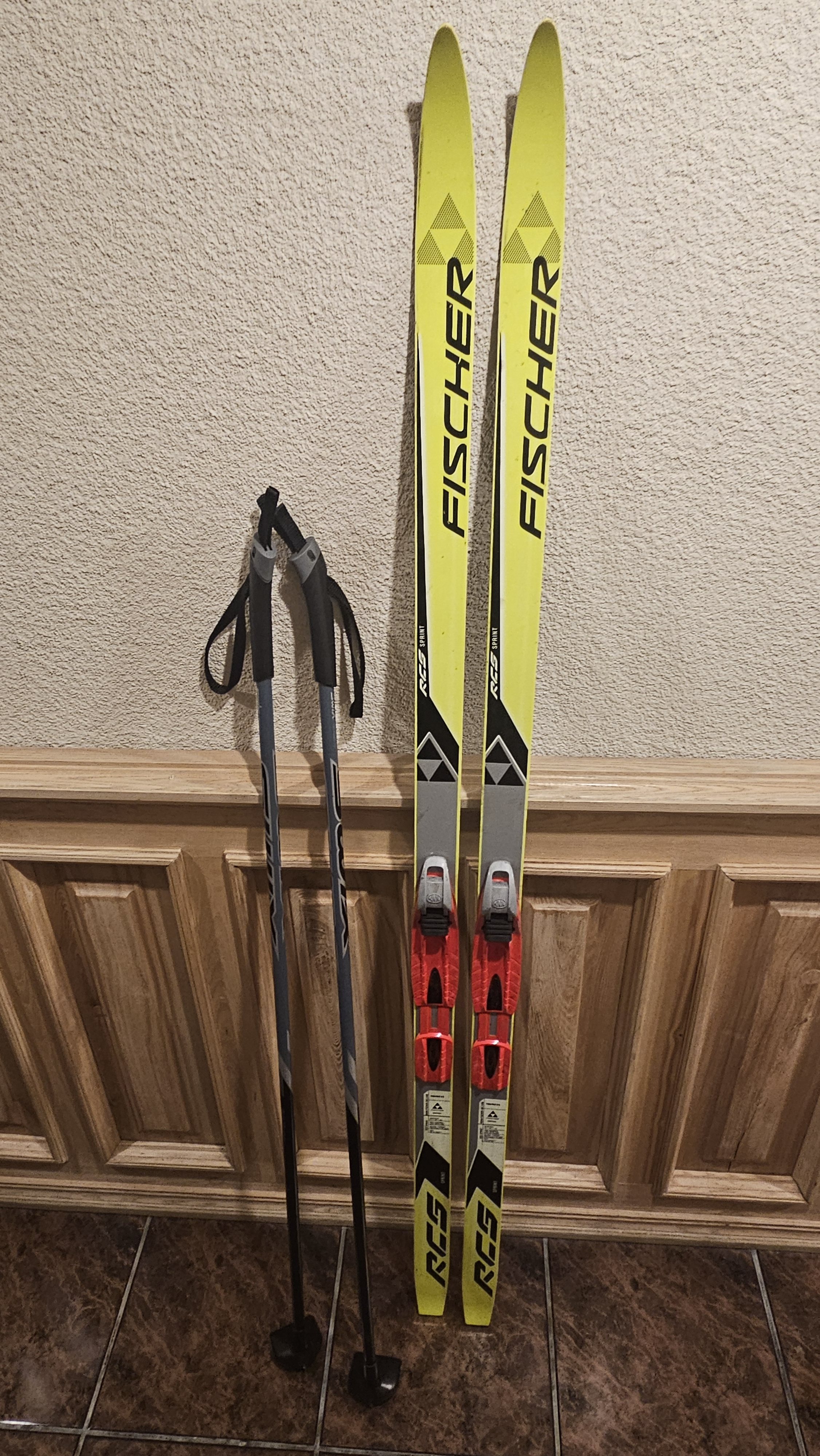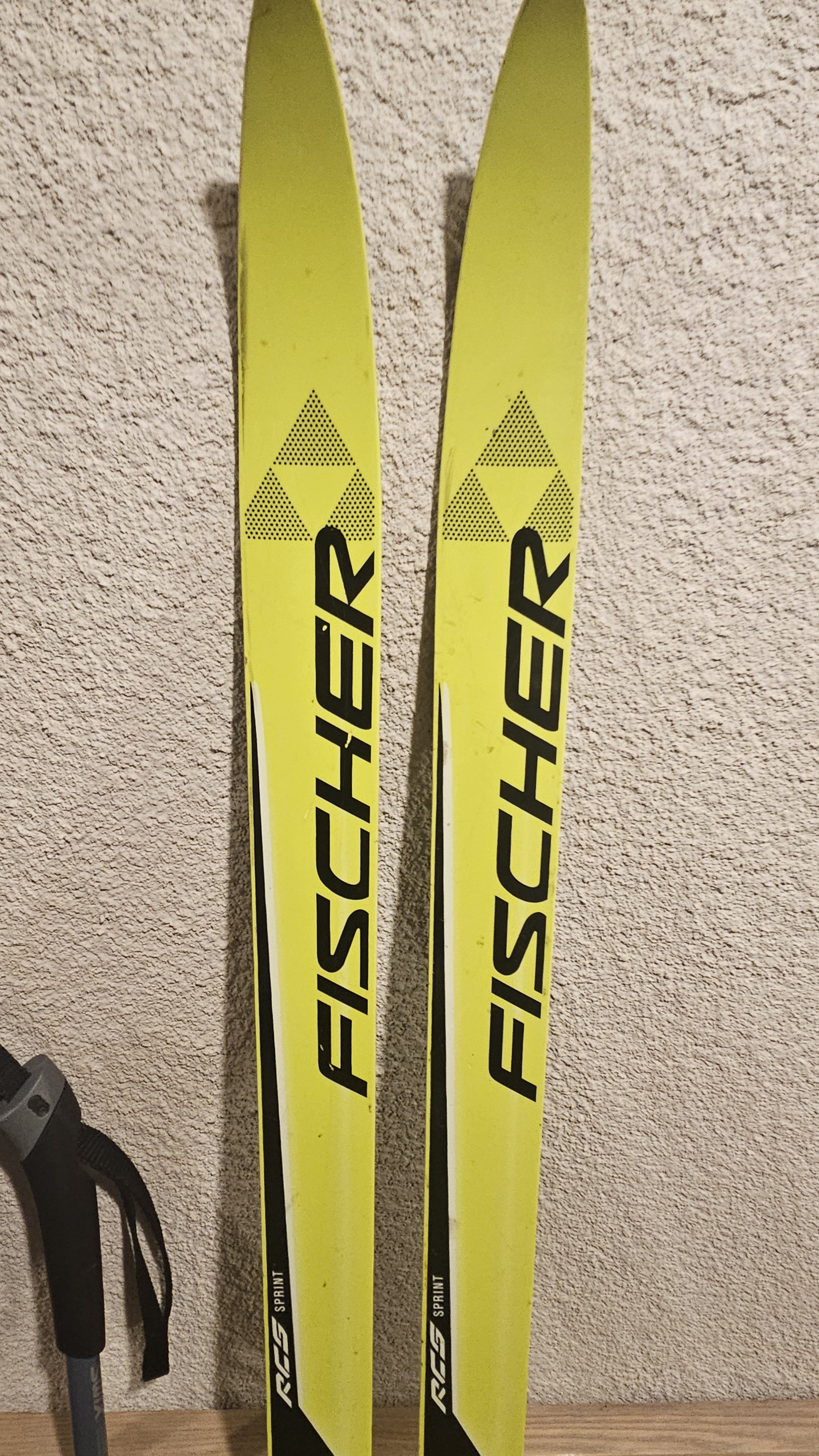 Kokybiškas „Fischer RCS Sprint“ lygumų slides su lazdomis (be batų). Būklė: naudotos, tačiau tvarkingos. Slidžių padas ir briaunos geros būklės, be pažeidimų