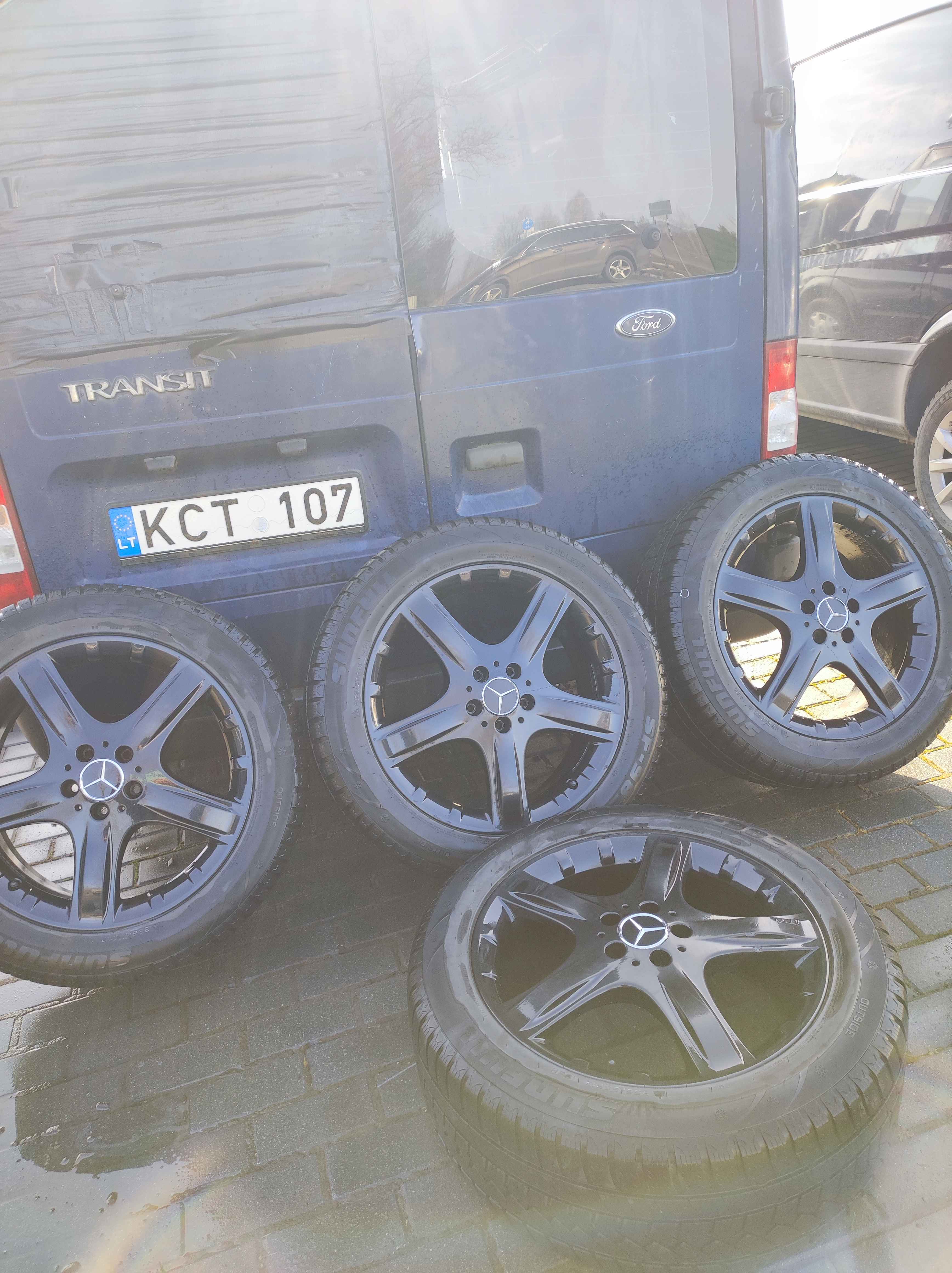 „Mercedes“ R19 ratlankius su žieminėmis padangomis. Ratlankių išmatavimai: R19, 8.5J, ET43, 5x112, centrinė skylė 66.5. Ratlankiai tvarkingi, neskilę. Vienas ratlankis turi nedidelį pabraižymą. Beveik naujos žieminės padangos