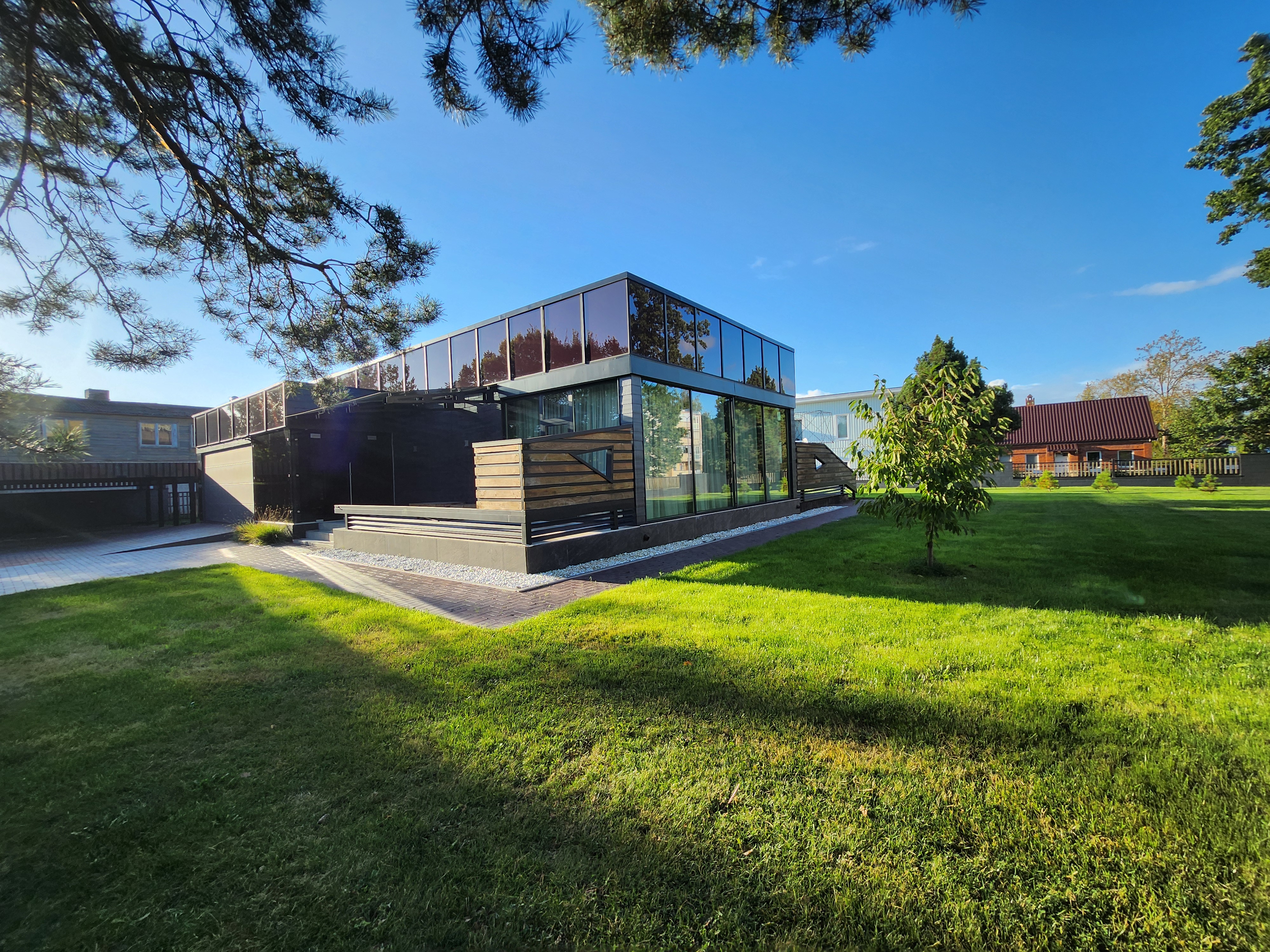 Modernų namą Rokiškio mieste. Bendras potas 208 kv. m.2 miegamieji, sauna, 2 san. mazgai.Šildymas oras/vanduo, elektrinė. Garažas, stoginė. Erdvus 19 a sklypas, Rokiškio centre