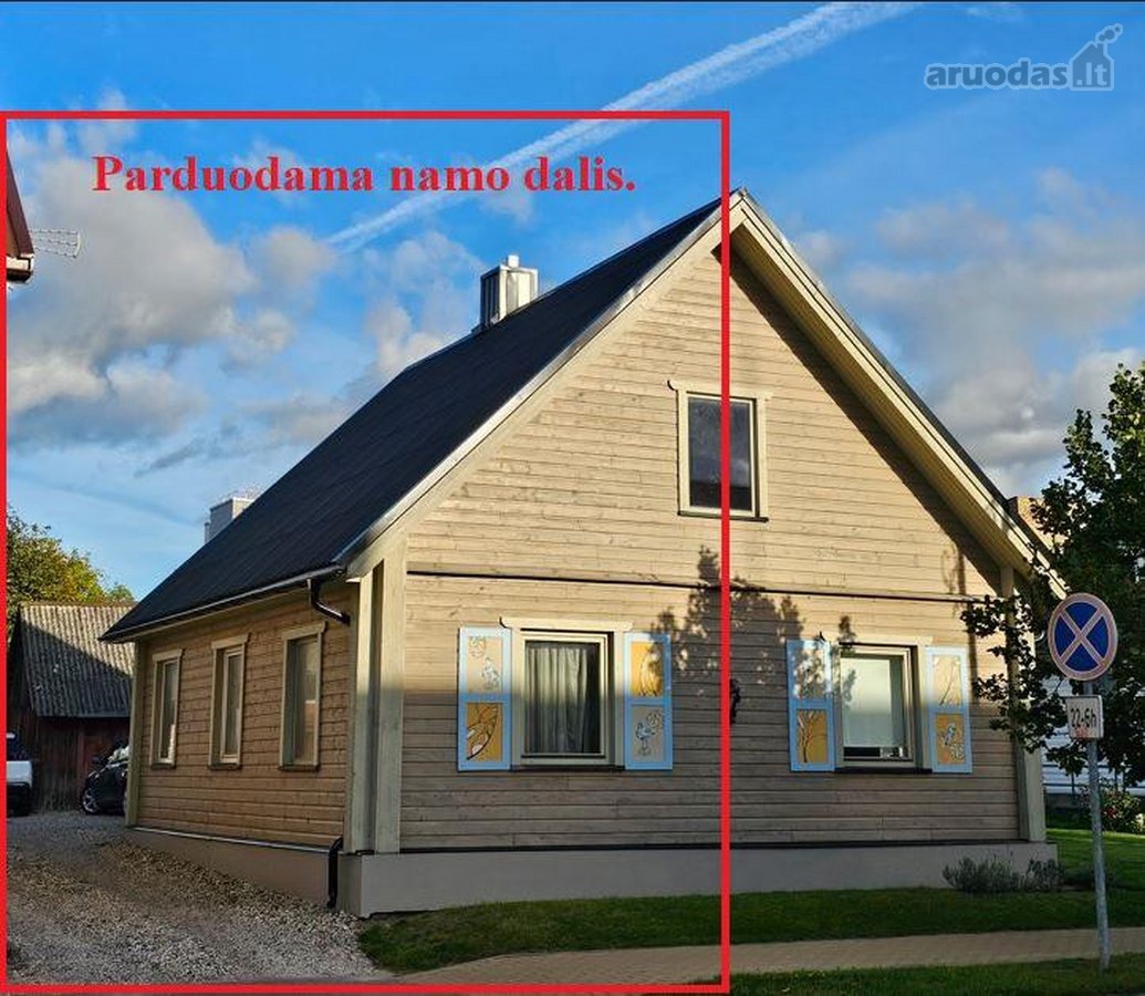 Namo dalį miesto centre, Respublikos g. 21. Su garažu ir ūkiniu pastatu. Reikalinga vidaus apdaila. Yra prijungtos miesto komunikacijos. 4,59 a žemės sklypas