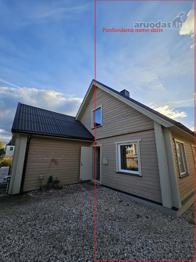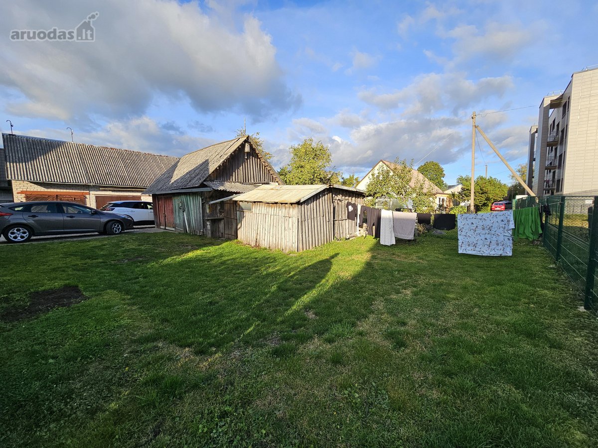 Namo dalį miesto centre, Respublikos g. 21. Su garažu ir ūkiniu pastatu. Reikalinga vidaus apdaila. Yra prijungtos miesto komunikacijos. Atskiras įėjimas