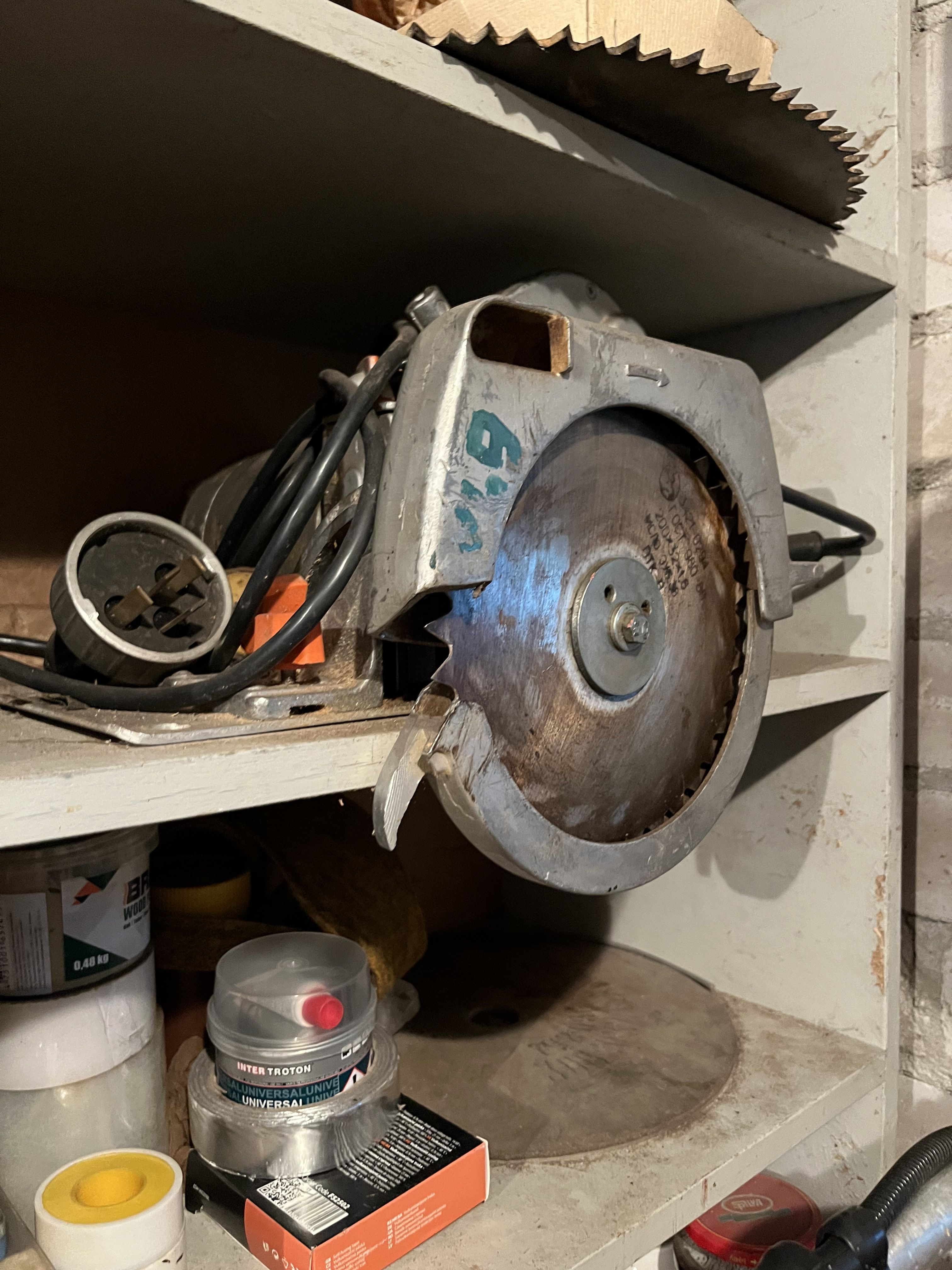 Galandinimo stakles (šmirgelį), telferį, kompresorių, diskinį pjūklą