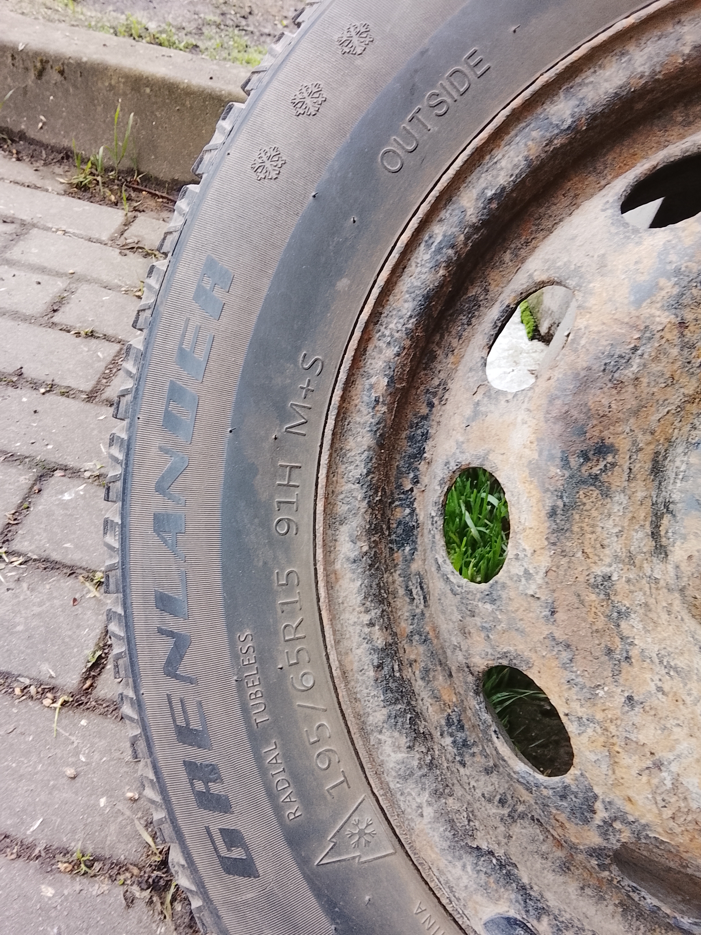 „Audi A4 B5“ R15 skardinius ratus su padangomis. Padangų likutis 6-7 mm. Už visus 4 ratus 80 Eur