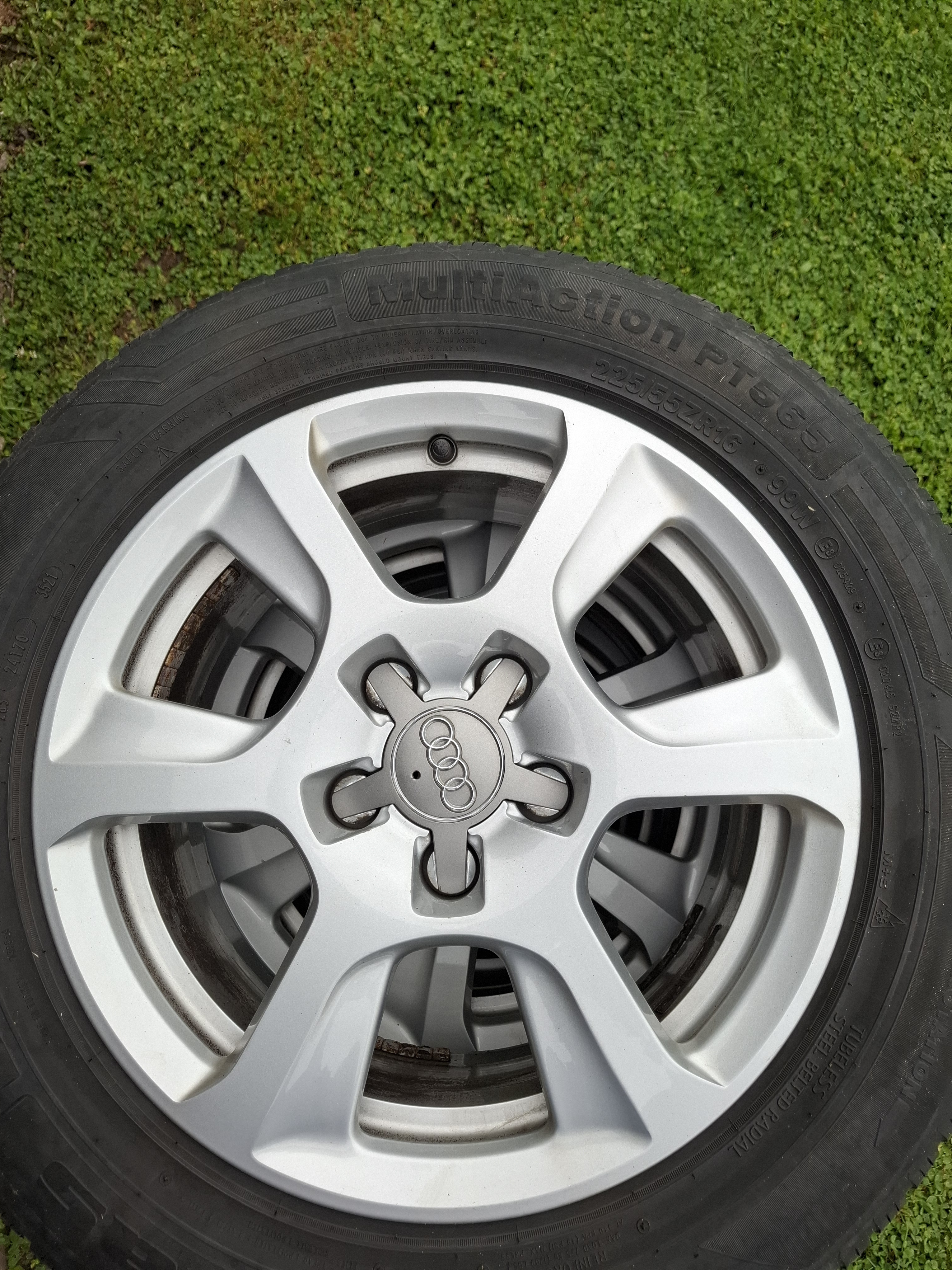 Originalius lengvojo lydinio ratlankius su padangomis R16, 225/55 M+S. Buvo uždėtos ant „Audi A4 B8“