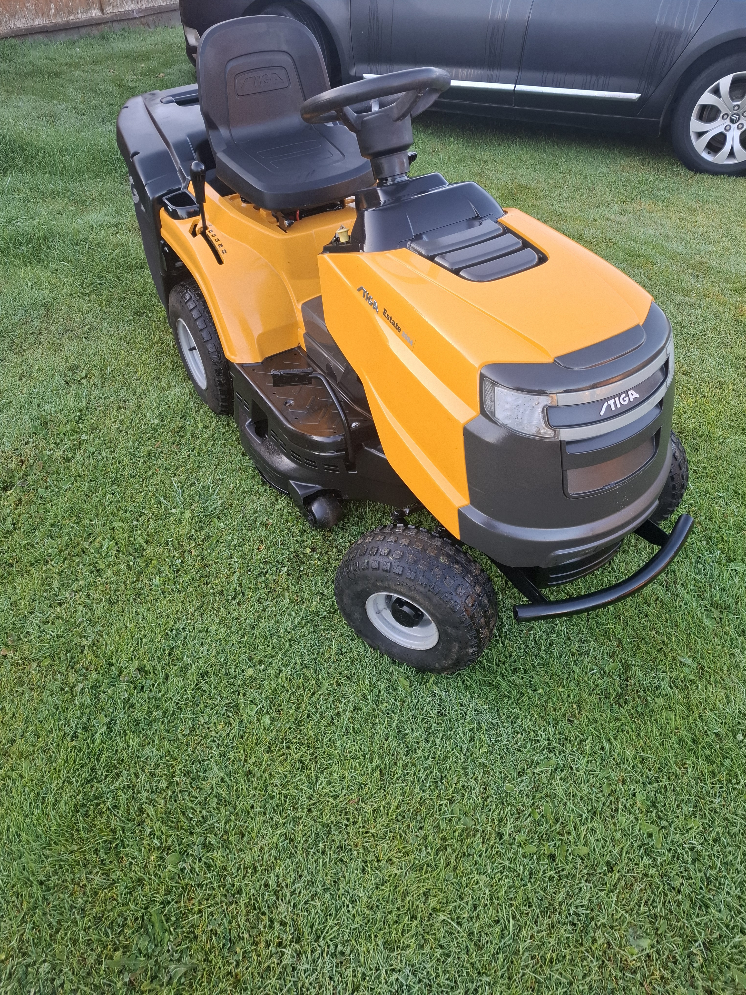 Sodo traktoriuką „Stiga Estete 2084“ 2015 m. Variklis 7,4 kW, pavarų dėžė mechaninė, deka tvarkinga, dviejų peilių, su surinkimo krepšiu, yra mulčiavimo kaištis