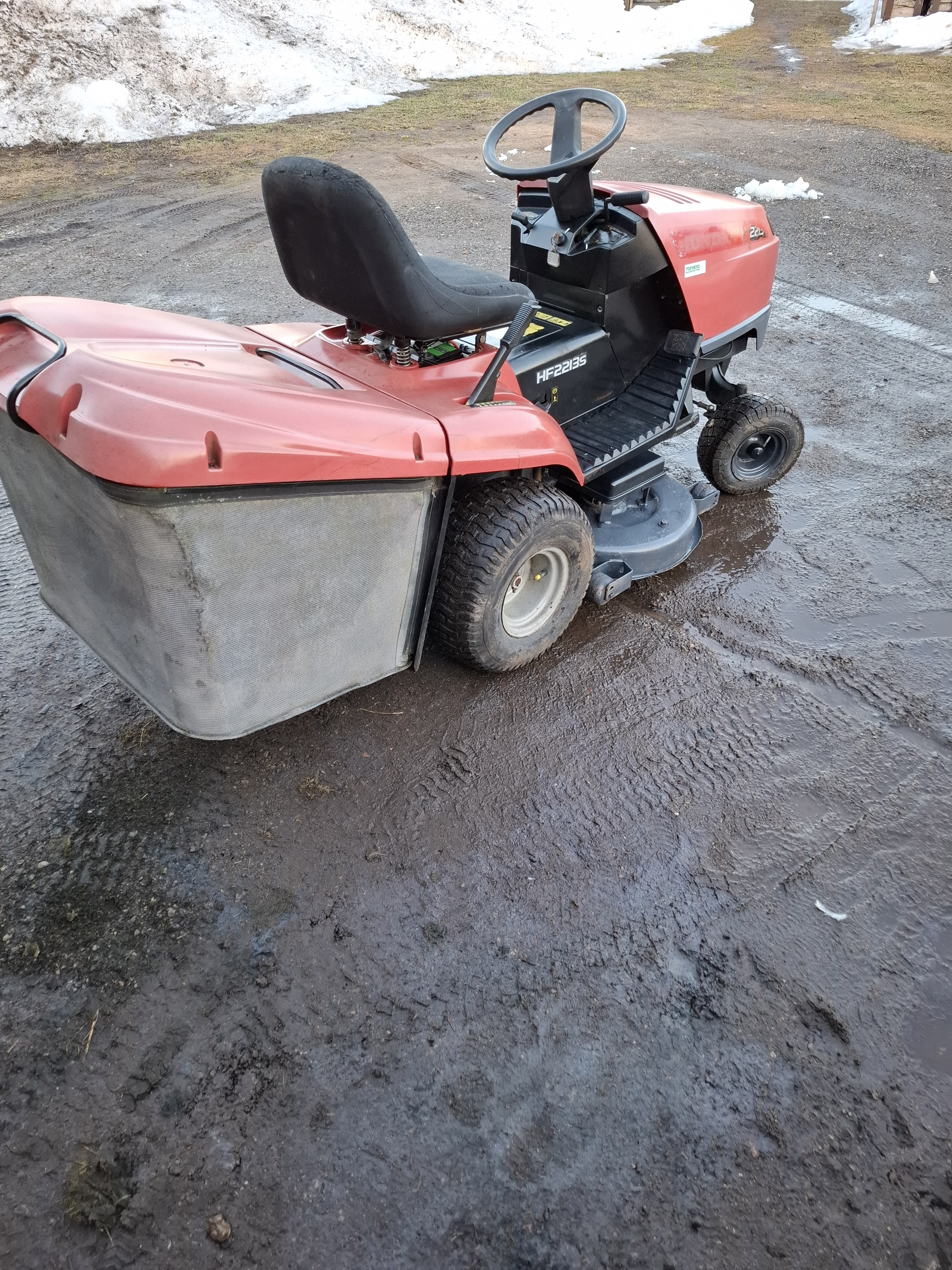 Traktoriuką „Honda HF 2213s“. Variklis „Honda“ 14 HP. Pakeisti tepalai, filtrai, pavarų dėžė mechaninė, dėka dviejų peilių, metro pločio, su surinkimo krepšiu