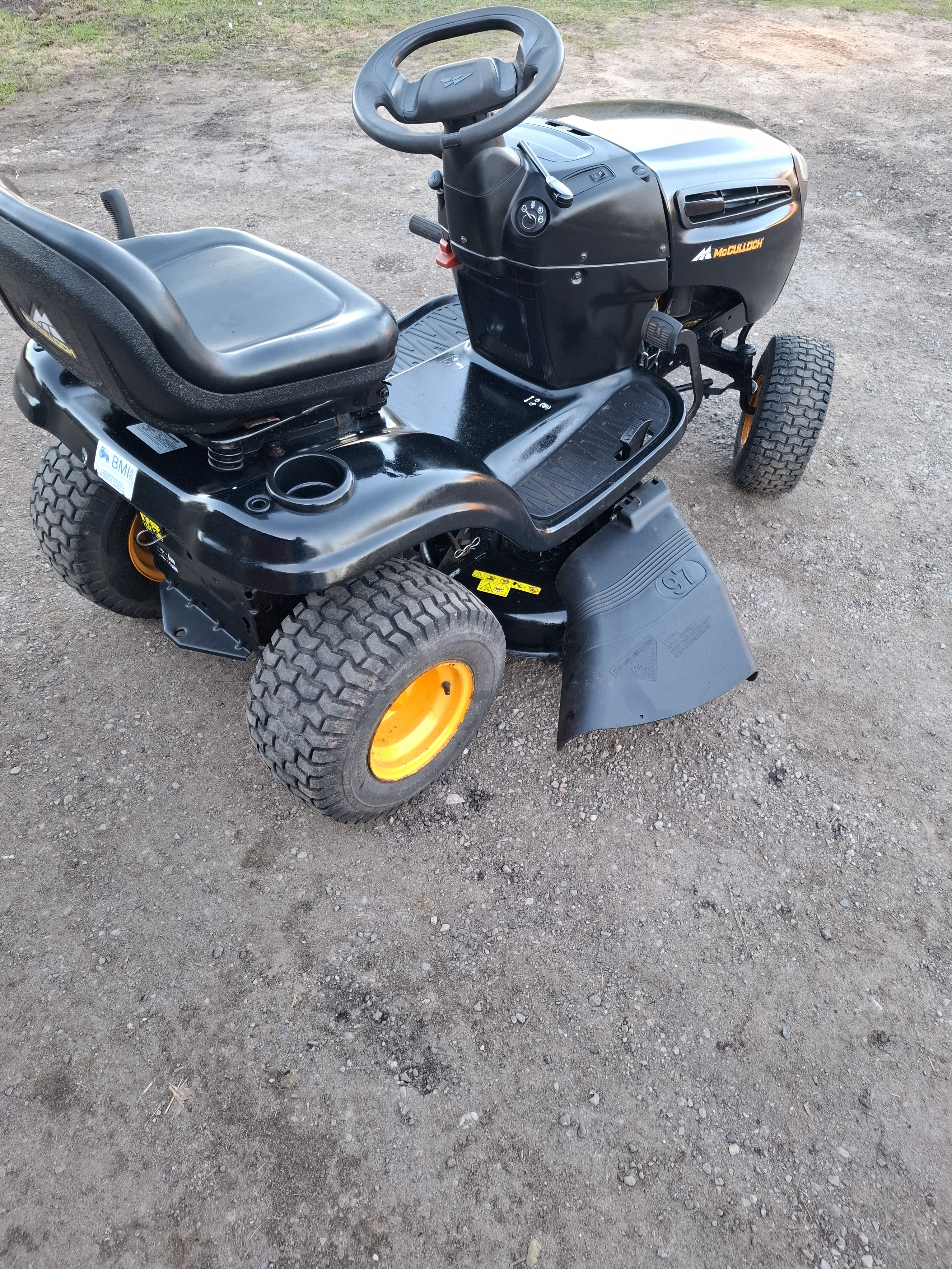 Sodo traktoriuką „Mucculloch“. 2014 m., variklis 12,5 Hp, pavarų dėžė - kojinis automatas, deka dviejų peilių, 97 cnt, su šoniniu išmetimu, paruoštas darbui