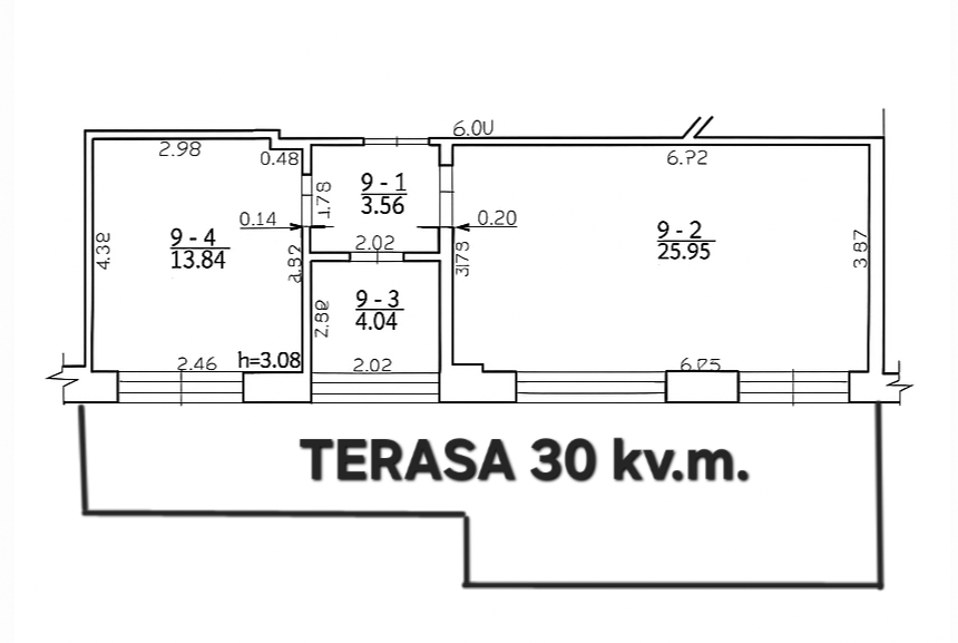 2 kambariai, 47,39 kv. m + 30 kv. m lauko terasa moderniai renovuotame name. Sudėti aukščiausios kokybės 3 stiklų langai. Plačios durys iš kiekvieno kambario į terasą. Privatus parkingas vidiniame kieme