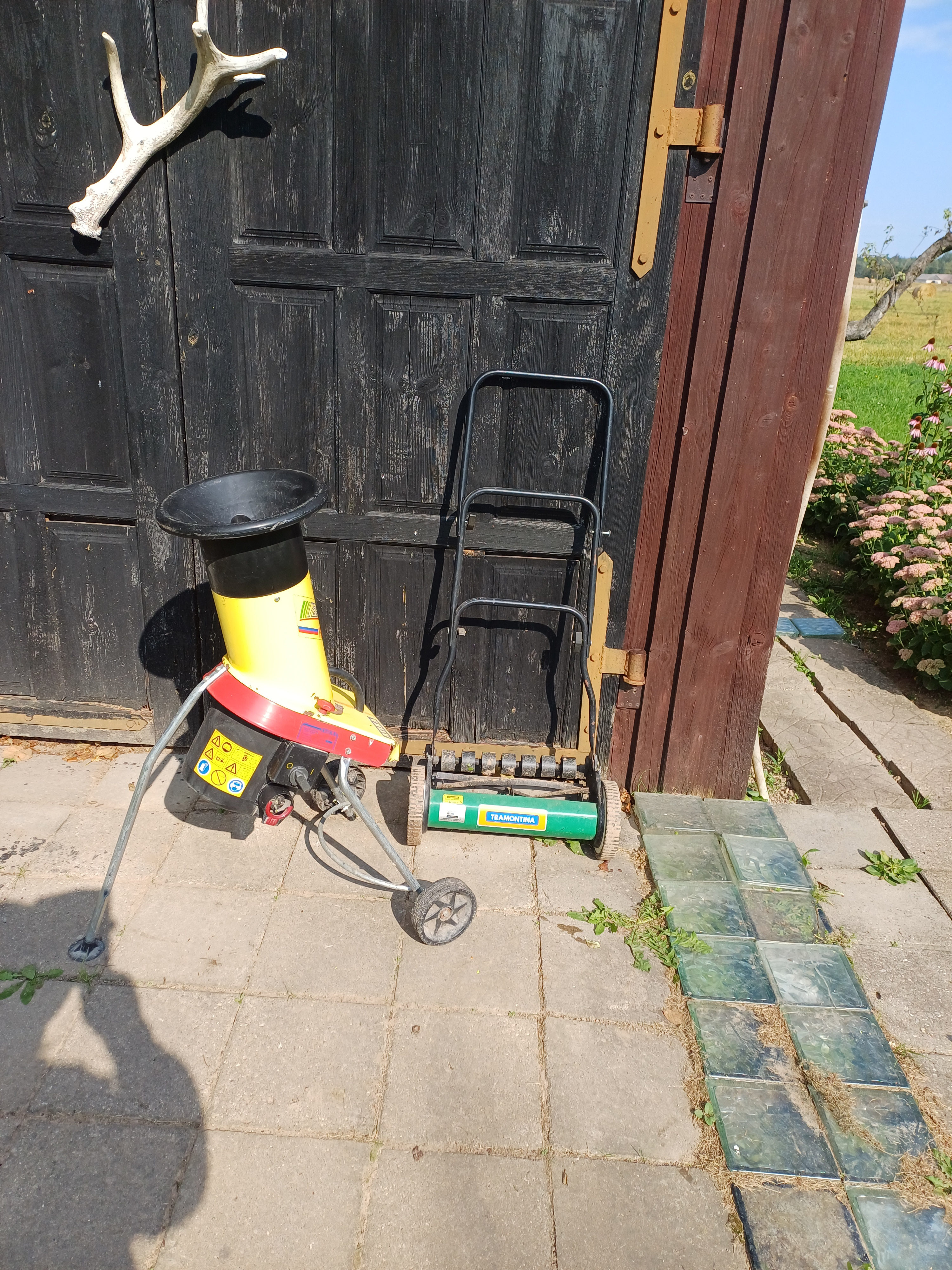 Žolės smulkintuvą - 20 Eur; Vejos lygintuvą - 20 Eur