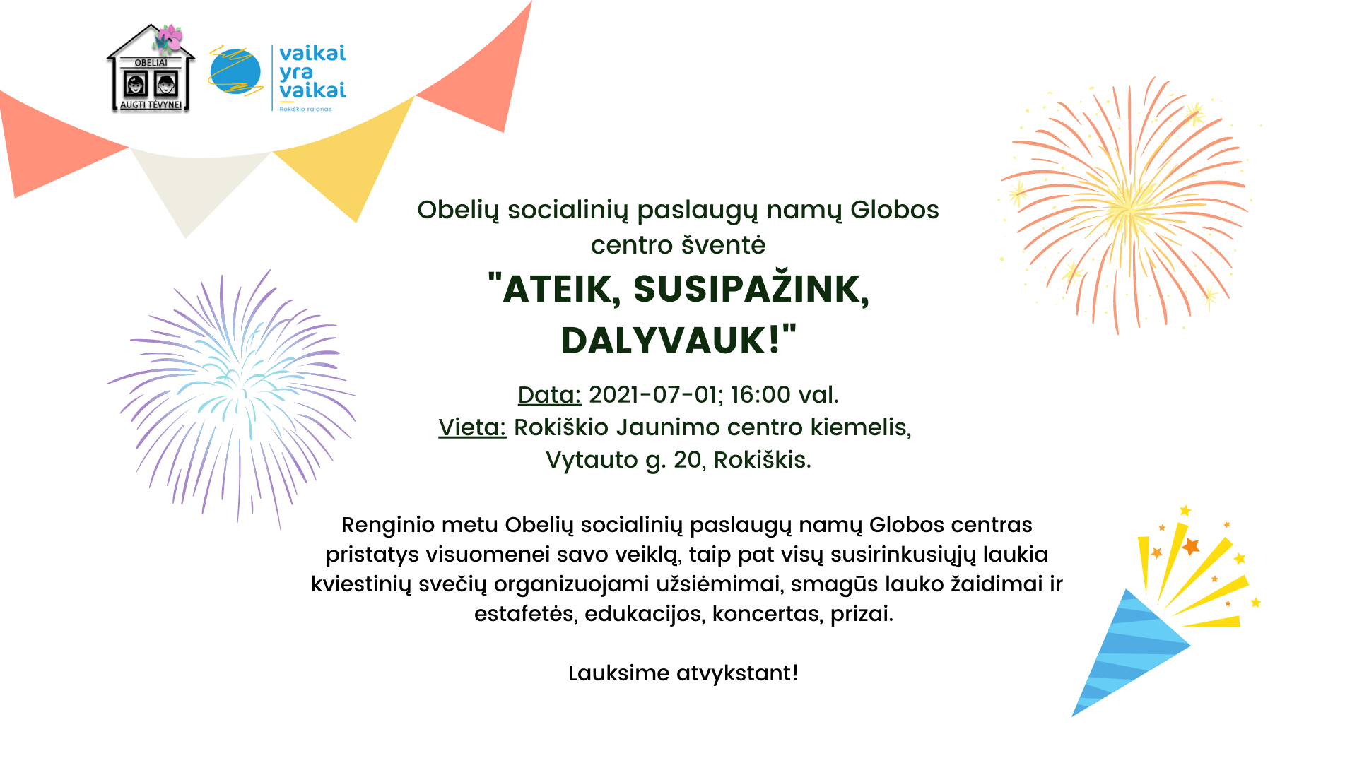 Pirmasis liepos sekmadienis - Globėjų diena. Jau antrus metus iš eilės nacionaliniu lygmeniu visose savivaldybėse vyksta įvairūs savaitės trukmės renginiai, skirti atkreipti visuomenės dėmesį į vaikų globą. Šiemet ji prasidėjo birželio 28-ąją ir truks iki liepos 4-osios. Obelių socialinių paslaugų namų Globos centras kviečia sekti Facebook profilį: Vaikai yra vaikai. Rokiškio rajonas ir dalyvauti įvairiose renginiuose.