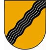 Auksiniame lauke juodas kairysis banguotas kaspinas su keturiomis sidabrinėmis banguotomis gijomis.