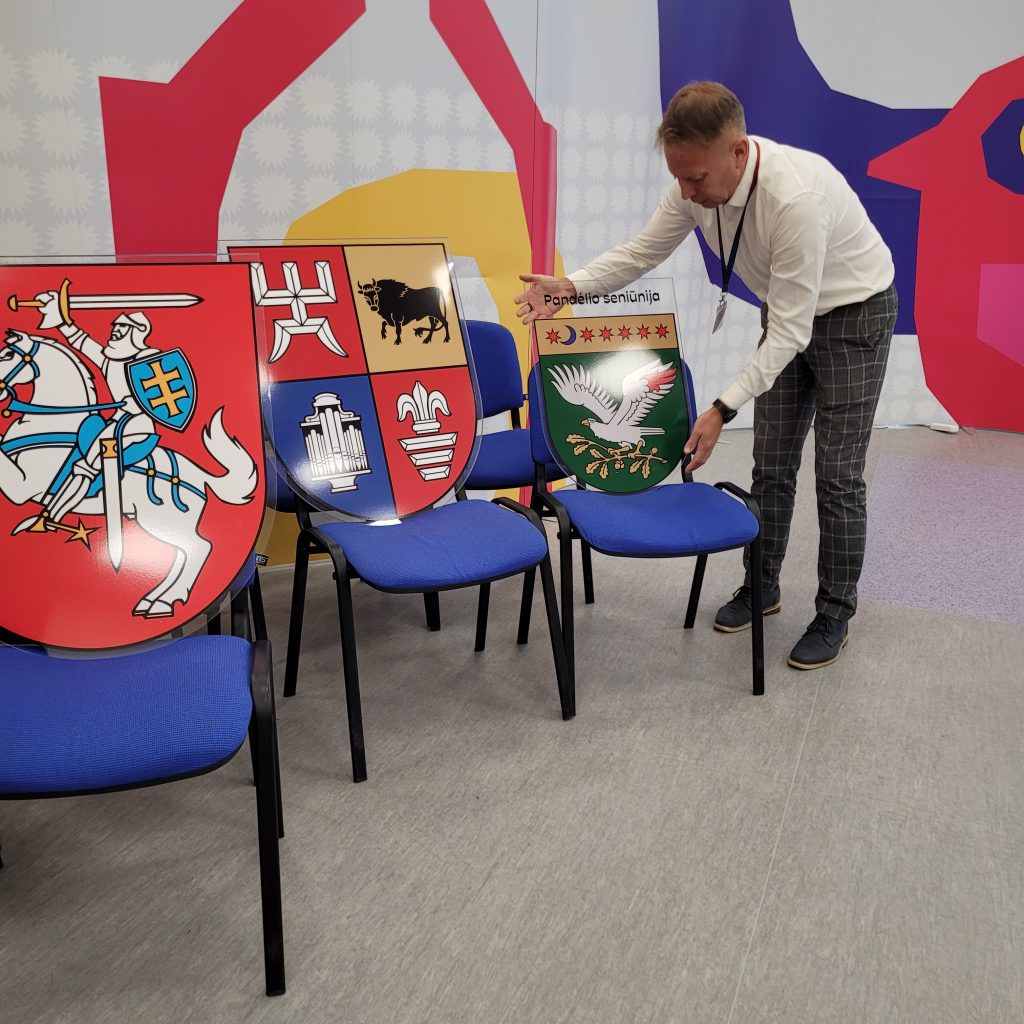 Projektą įgyvendinusi savivaldybės Komunikacijos ir kultūros skyriaus vedėjos pavaduotoja Giedrė Kublickienė sako, kad sunkiausia buvo susirasti kokybiškus failus, iš kurių būtų galima pagaminti originalus atitinkančius herbus. „Ypač vargom su senu Pandėlio herbu, bet galiausiai viską pavyko išspręsti. Herbai pagaminti iš skaidraus organinio stiklo, atitinka originalius piešinius ir spalvas. Jie iškilūs ir šiek tiek atitraukti nuo sienos, kaip ir užrašai“, – pakomentavo G. Kublickienė.