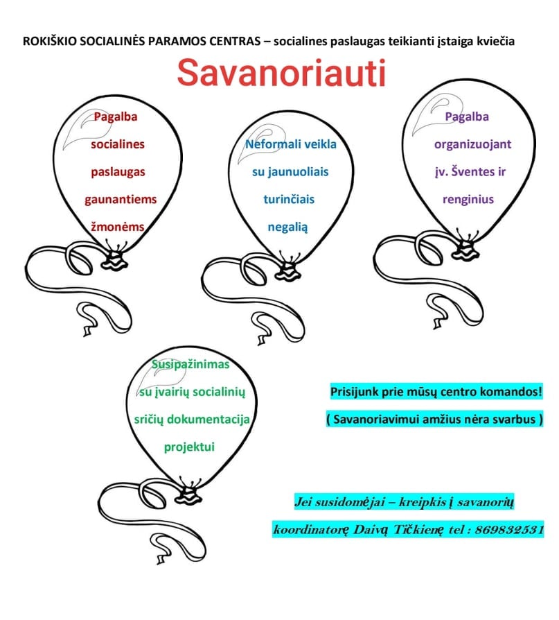 Rokiškio socialinės paramos centras - socialines paslaugas teikianti įstaiga kviečia savanoriauti.