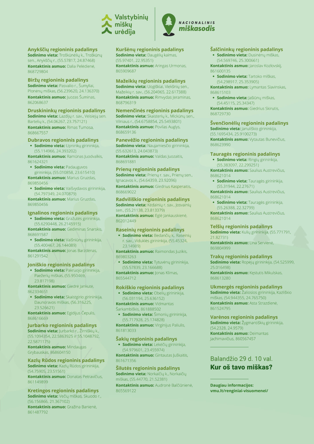 Kontaktiniai asmenys: Girininkas Vidmantas Šarkambiškis, tel.: 8 618 88502.