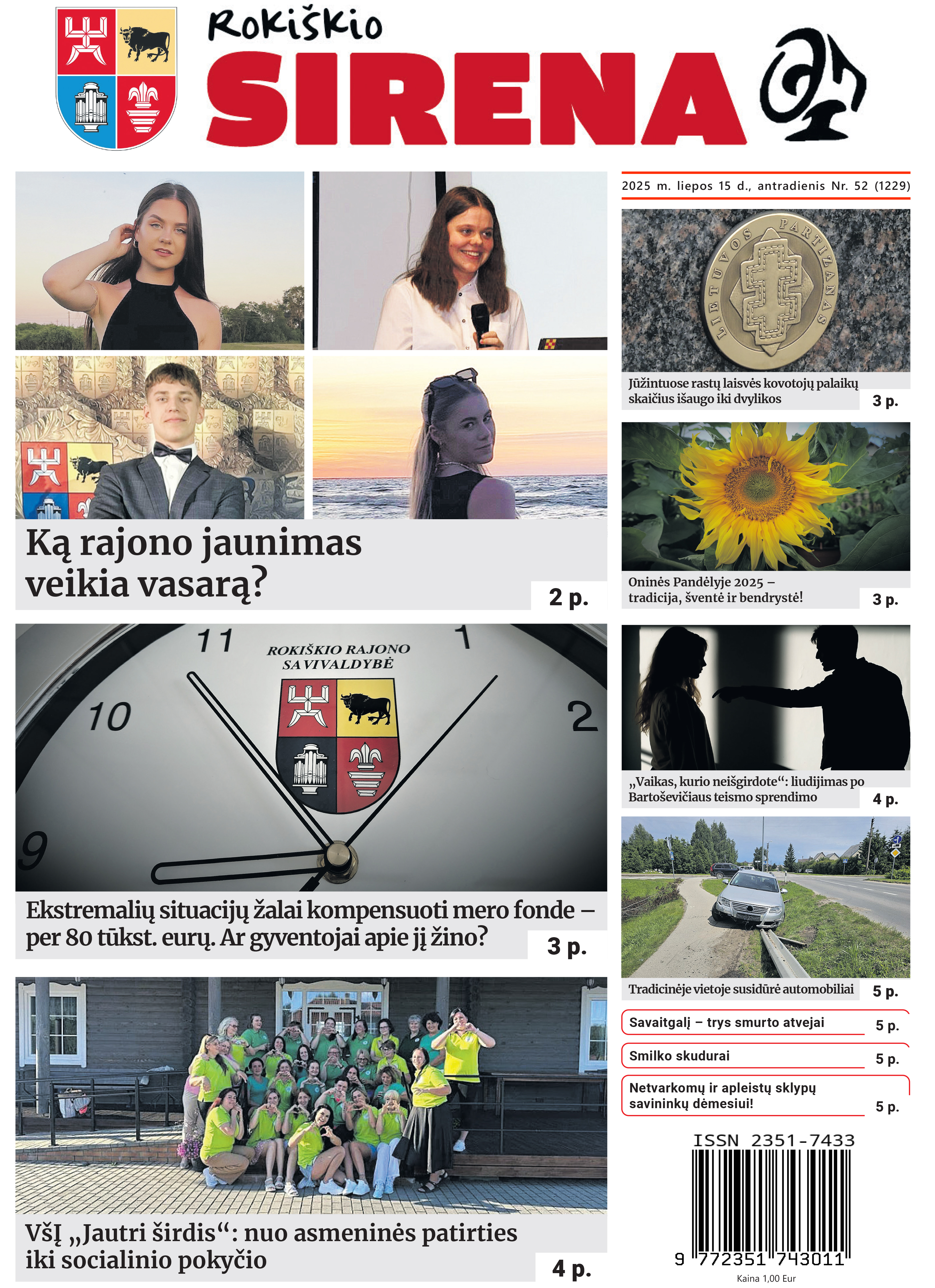 Antradienio, liepos 15-osios „Rokiškio Sirena“ numeryje skaitykite: