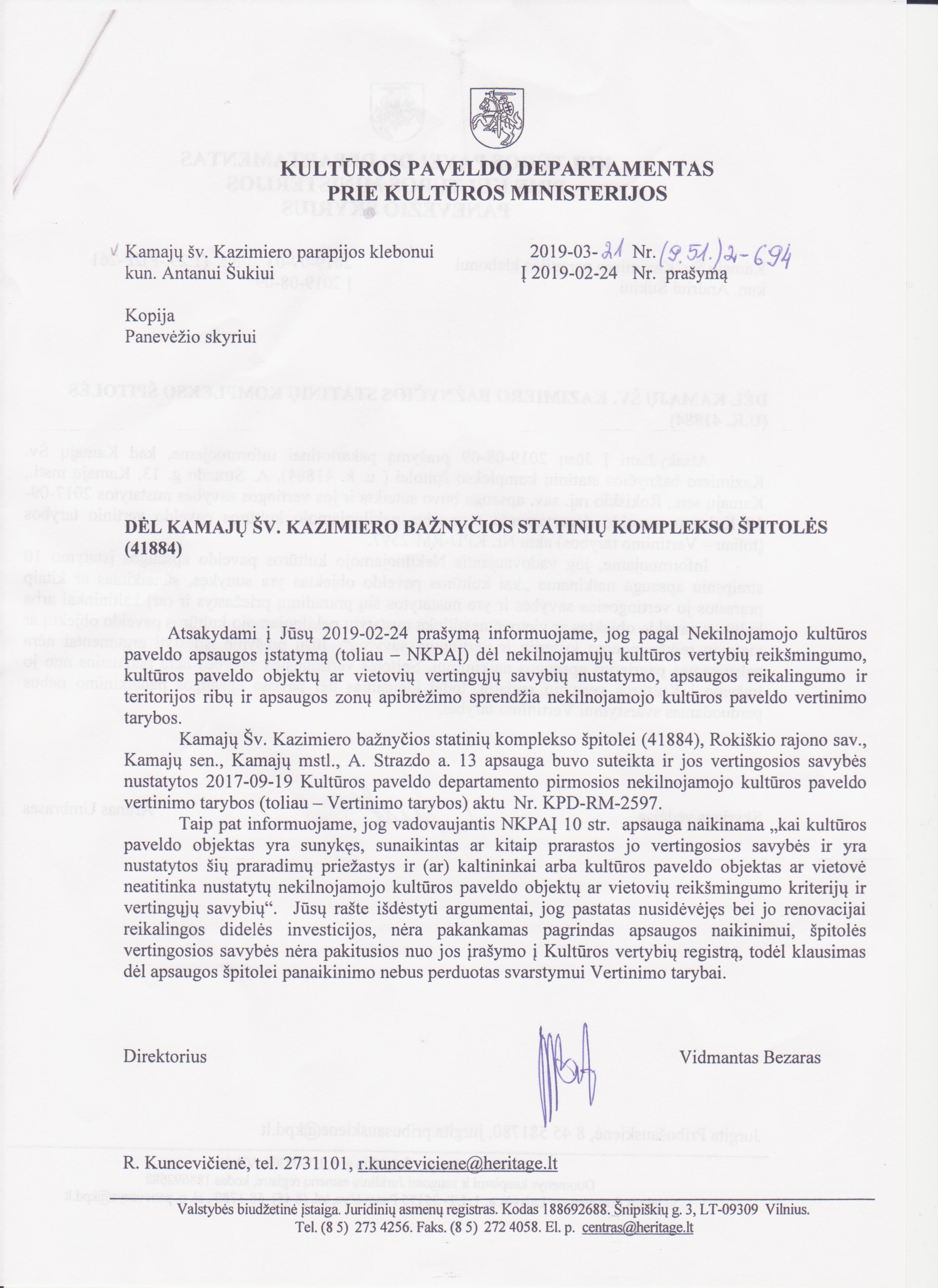 Tačiau, iš pateikto Kultūros paveldo departamento direktoriaus Vidmanto Bezaro pasirašyto dokumento matyti, kad braukti špitolę iš kultūros paveldo sąrašų nesiruošiama. A. Šukys, gavęs šį raštą, nenuleido rankų, ir nusiuntė pakartotinę užklausą. Pernai rugsėjį jis gavo lygiai tokį pat atsakymą ir iš Kultūros paveldo departamento Panevėžio skyriaus vedėjo.