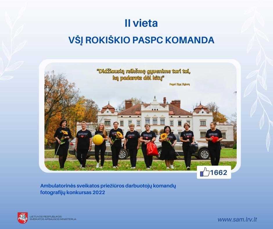 23 dalyvių komandos iš visos Lietuvos, tarp kurių ir Rokiškio pirminės asmens sveikatos priežiūros centro (PASPC) kolektyvas, varžėsi ambulatorinės sveikatos priežiūros darbuotojų fotografijų konkurse.