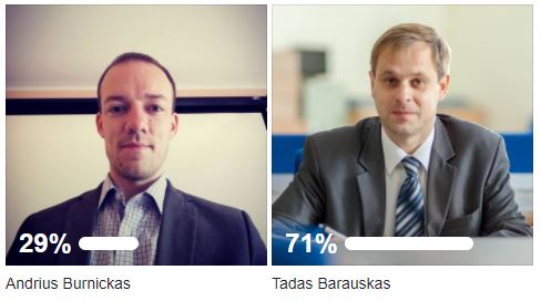 Pirmąją politikos ringo kovą laimėjo socialdemokratas Tadas Barauskas. Jis gana didele taškų persvara įveikė Andrių Burnicką. Iš viso apklausoje dalyvavo 675 žmonės. 199 balsai teko Andriui Burnickui, na o Tadas Barauskas surinko net 476 taškus. Pilną apklausos ataskaitą ir komentarus galite matyti ČIA