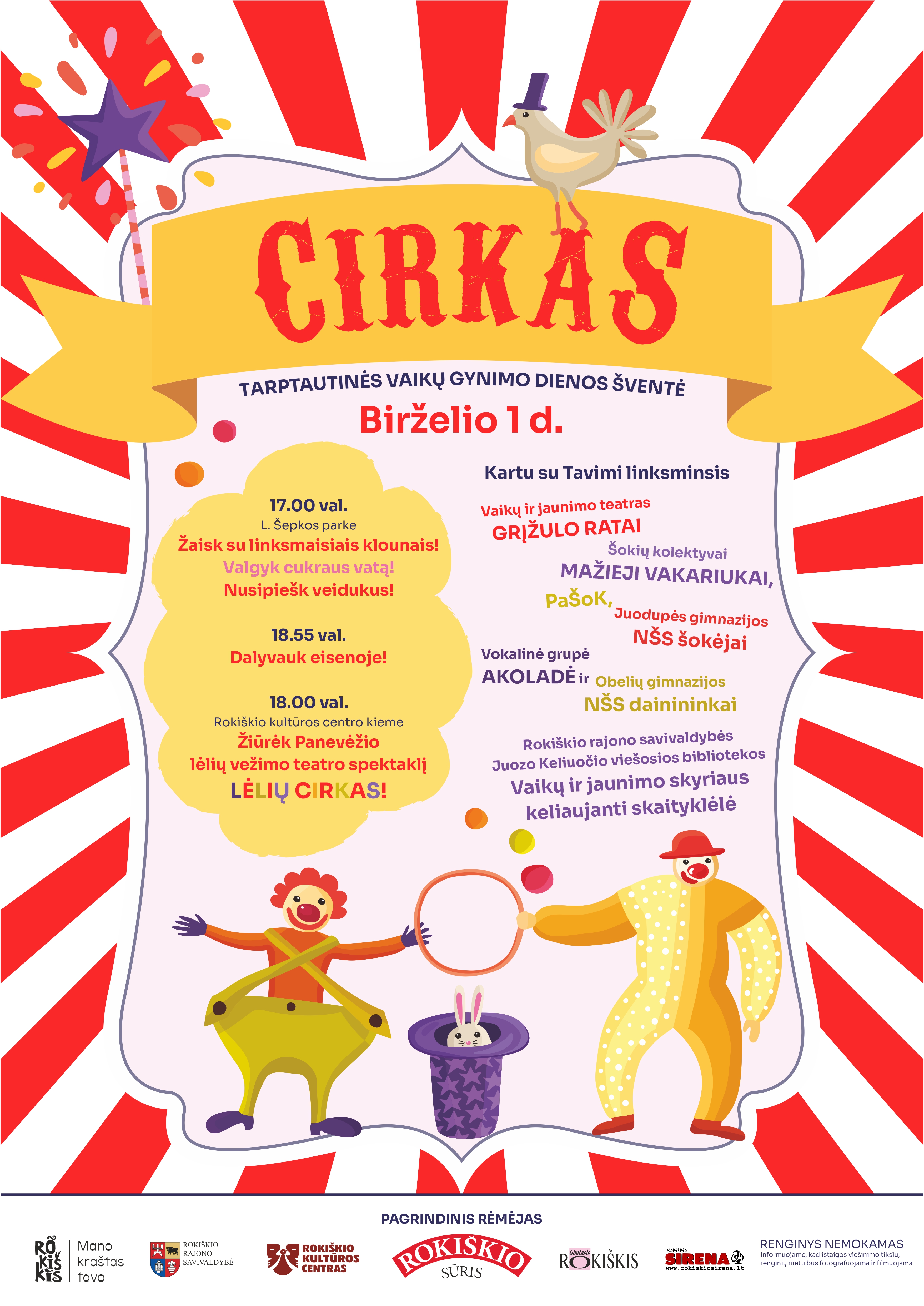 Birželio 1 d. 18 val. Rokiškio kultūros centro kieme – Panevėžio lėlių vežimo teatras kviečia į spektaklį „Lėlių cirkas“!