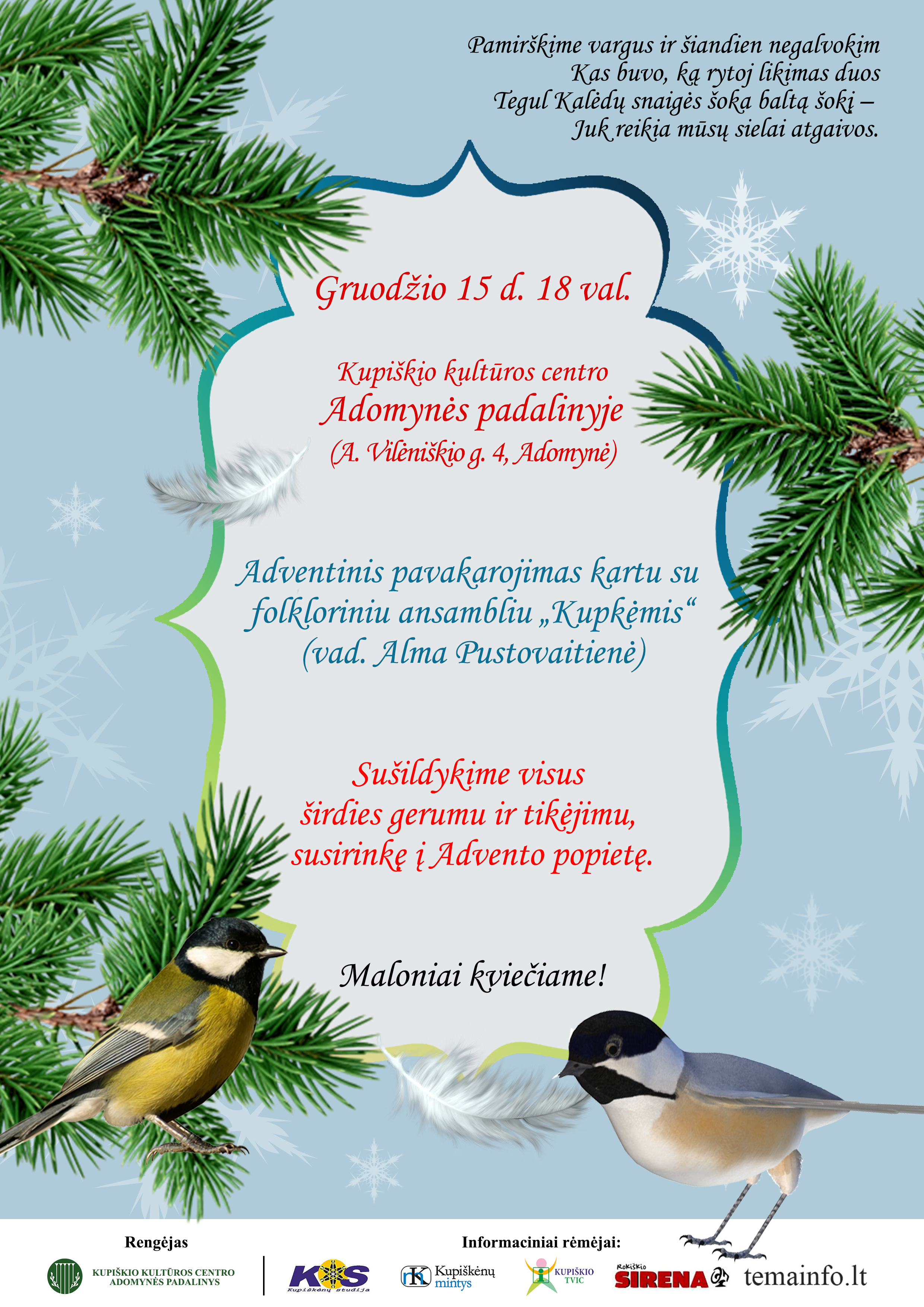 Adomynėje gruodžio 15 d. bus Adventinis vakarojimas su ansambliu "Kupkės" (0)