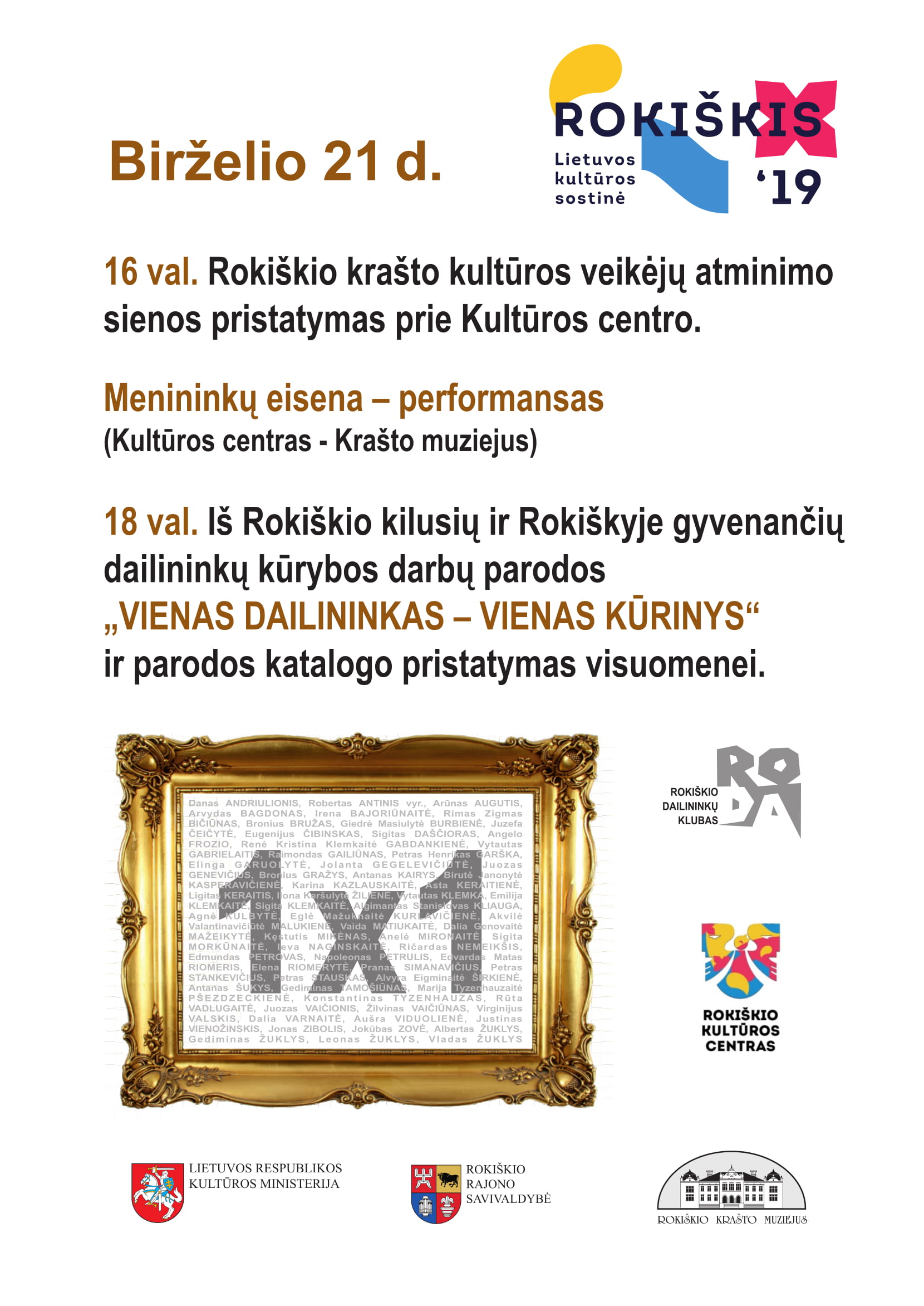 Birželio 21-ąją vyks Rokiškio krašto kultūros veikėjų atminimo sienos pristatymas prie kultūros centro. Rokiškio krašto Kultūros veikėjų atminimo siena skirta įamžinti žmones, formavusius Rokiškio krašto kultūrinį veidą. Visus maloniai kviečiame atvykti!
