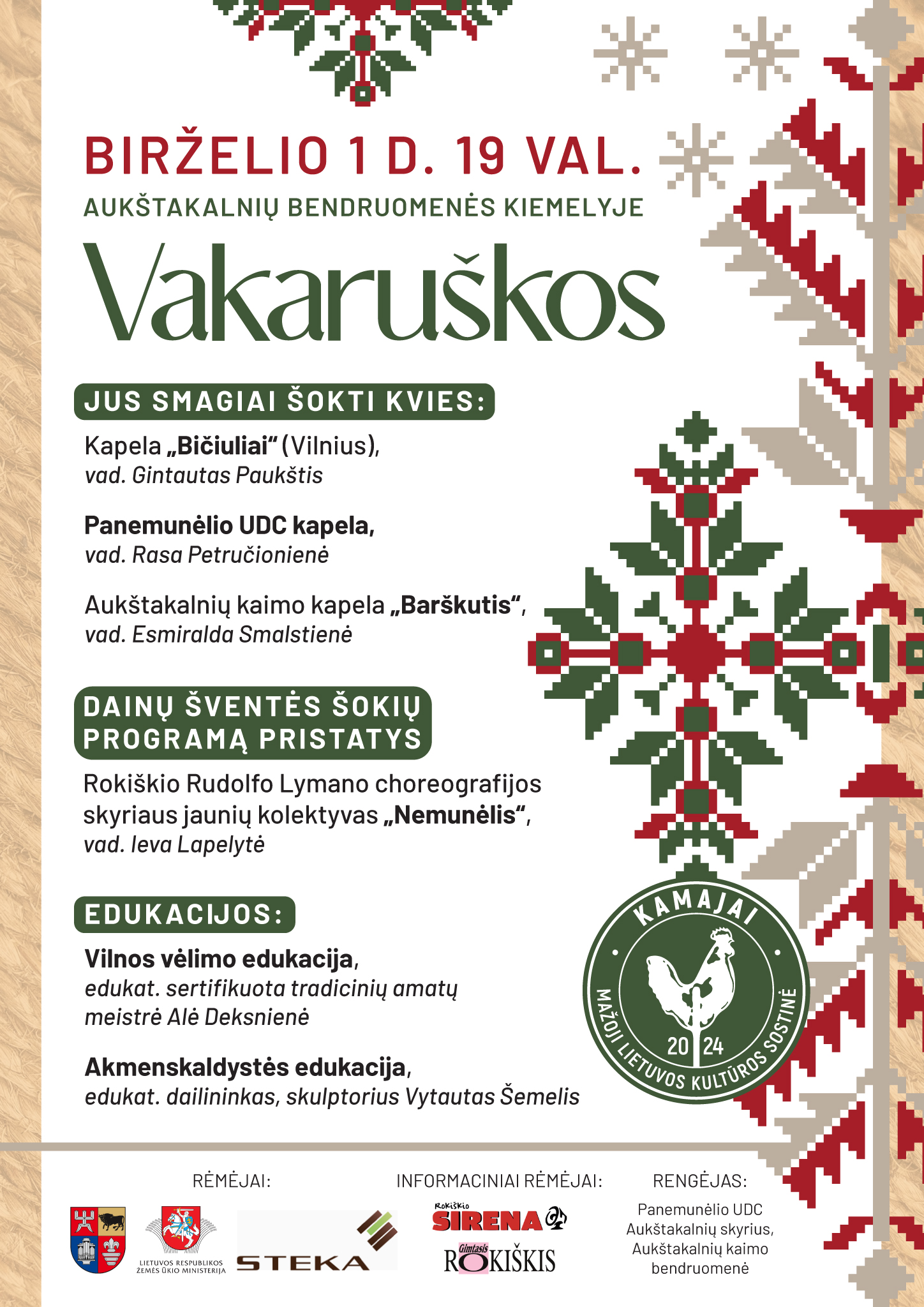 Birželio 1 d. 19 val. Aukštakalnių bendruomenės kiemelyje - vakaruškos.