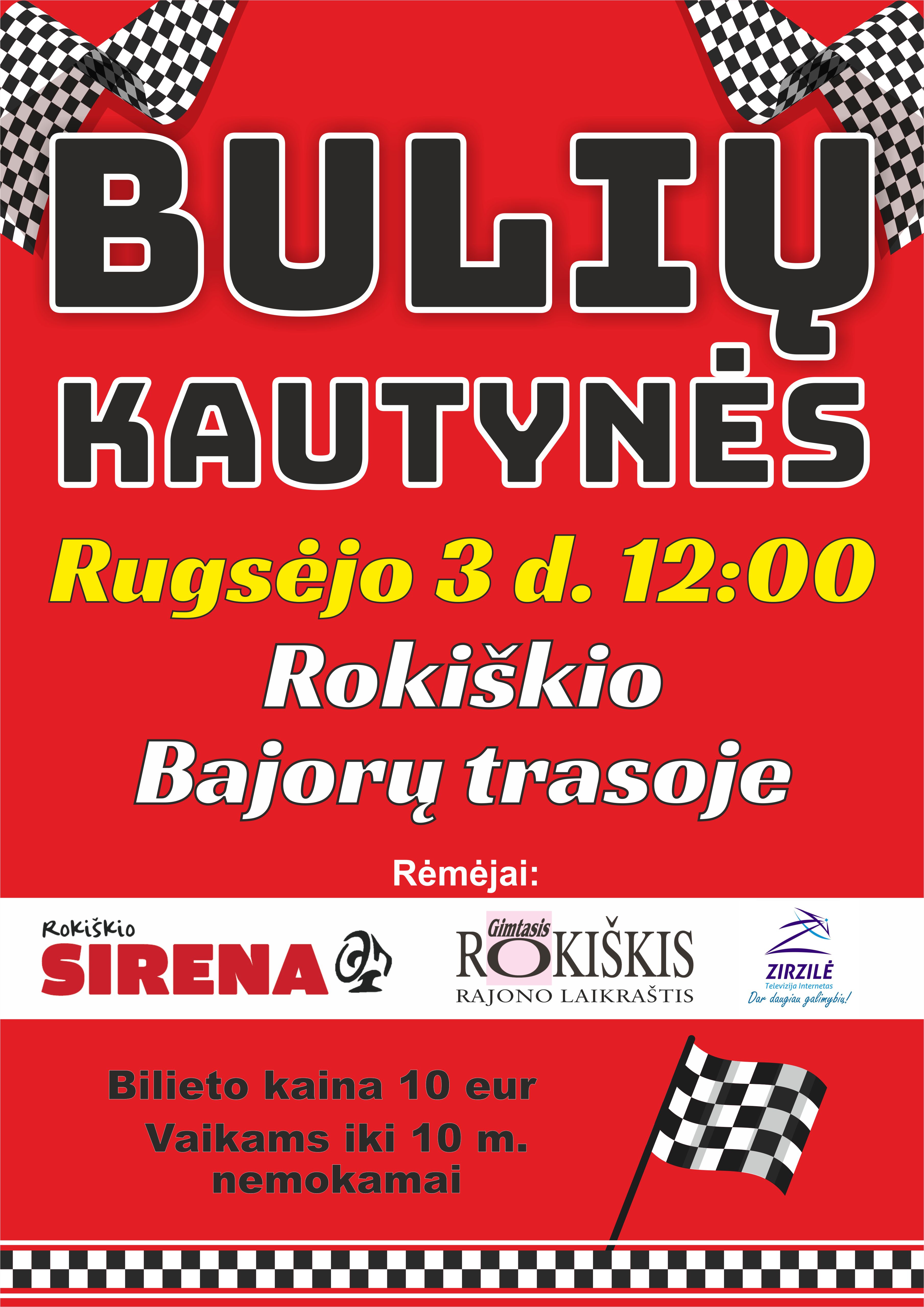 Rugsėjo 3 d. 12 val. Rokiškio Bajorų trasoje vyks Bulių kautynės. Bilieto kaina 10 Eur, vaikams iki 10 m. nemokamai.